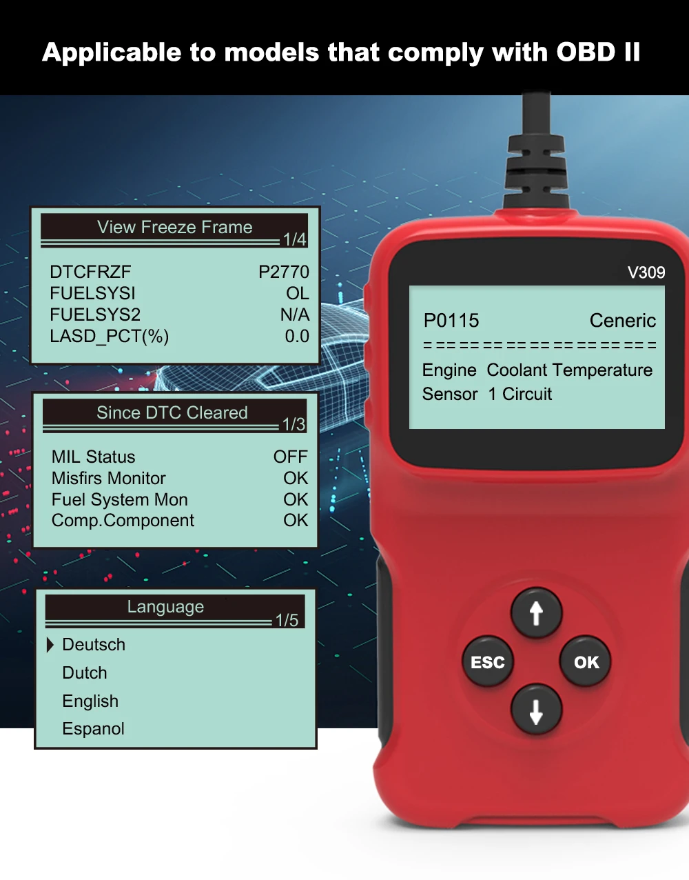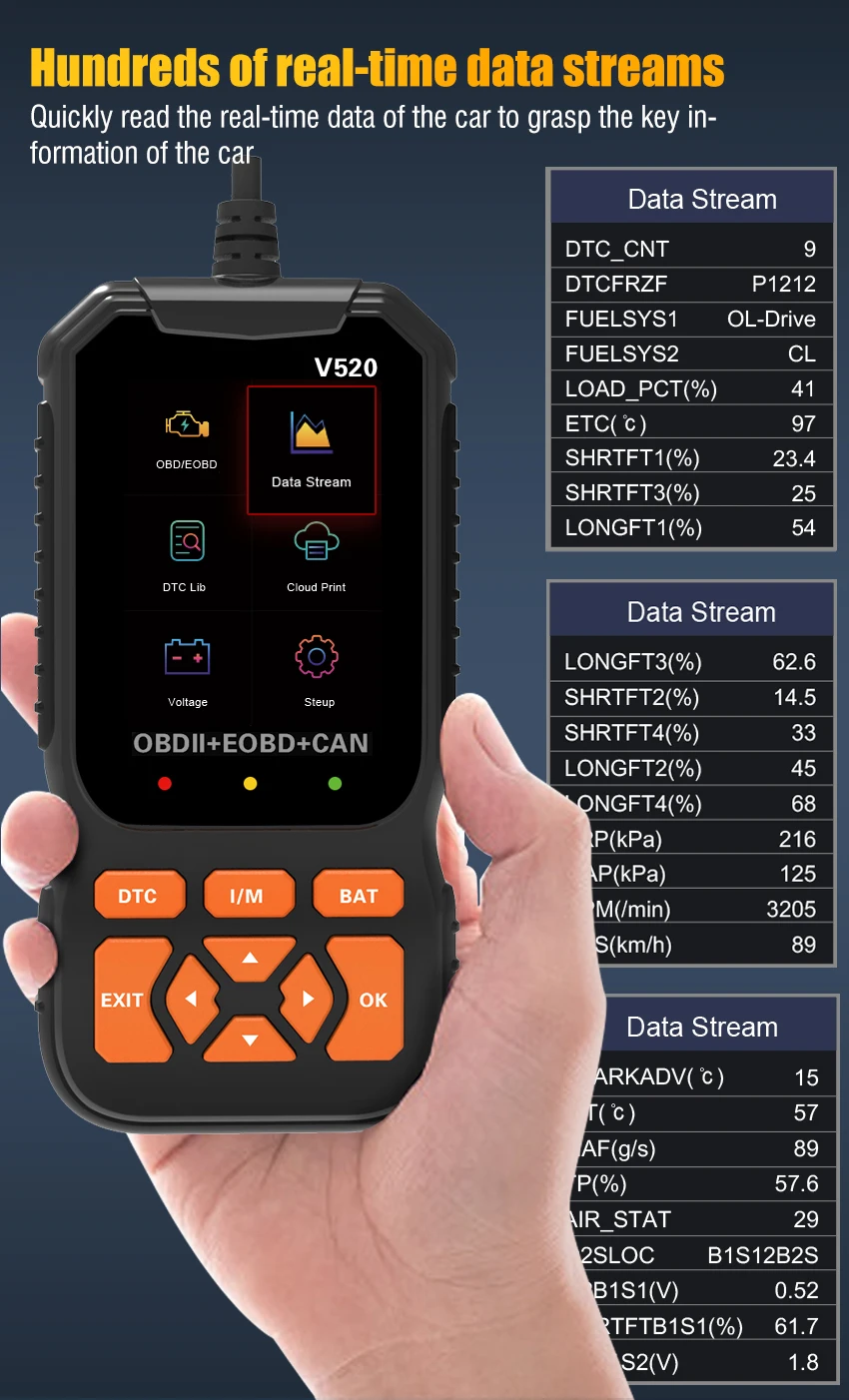 이 OBDII / EOBD 디코더는 OBD II에 따른 모든 차량에 특별히 적용됩니다.