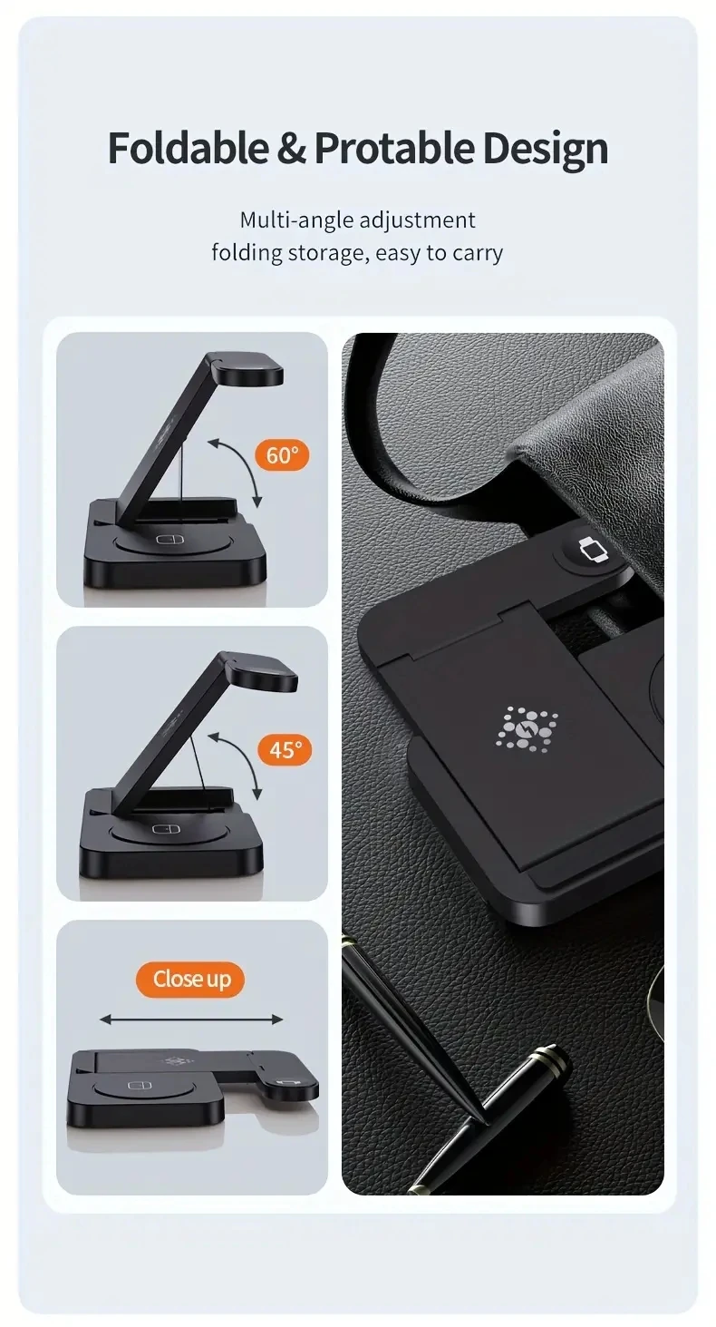 【휴대용 및 접이식 여행용 충전기 스탠드】Sumsung 용 충전소는 접어서 가방이나 가방에 넣을 수 있습니다. 당사의 무선 충전 패드는 가정, 사무실, 여행 중이거나 출장 중인 경우, 이 4-in-one 충전기, 한 번에 여러 장치를 충전 할 수 있습니다. 또한 각도 조절이 가능한 다양한 휴대 전화 스탠드. 충전 패드로, 휴대폰을 평평하게 놔두면 충전 상태를 유지할 수 있습니다.