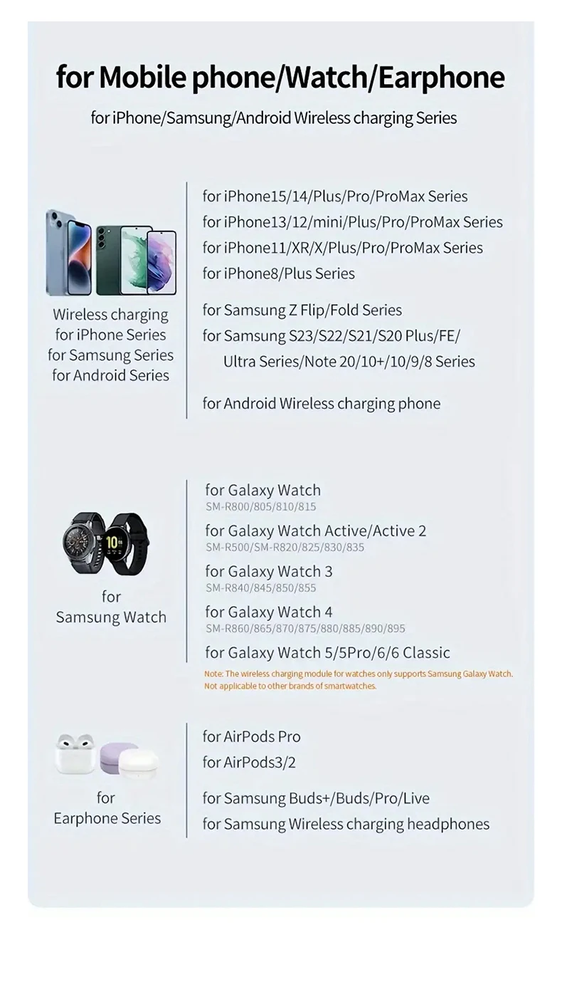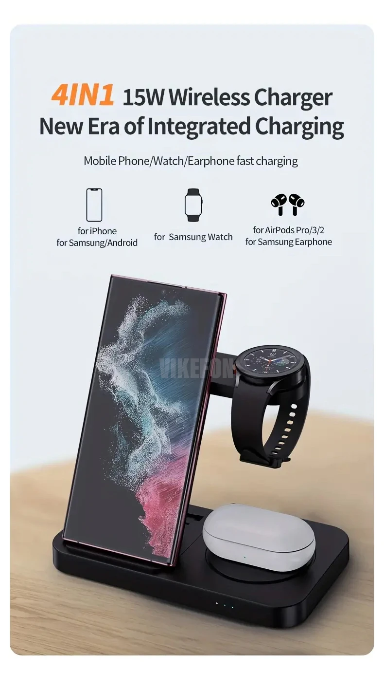 3. 4 In 1무선 충전을 지원하는 모든 삼성 시계/전화/이어폰 용 무선 충전기.