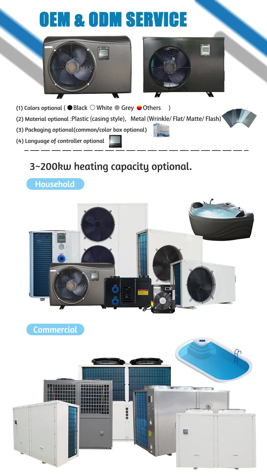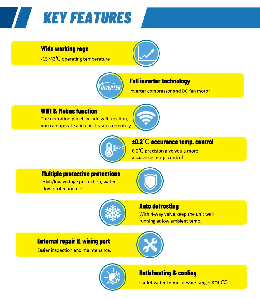 난방 및 냉각, 출구 물 온도. : 8 ~ 40 ℃