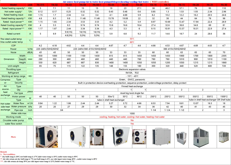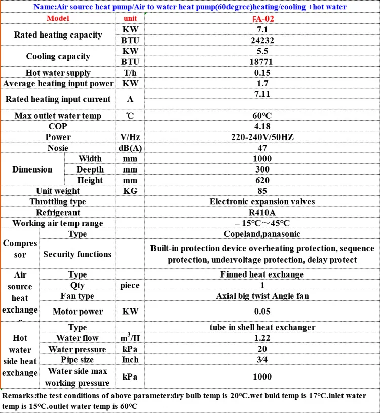 7.1kw R410A 또는 R32 공기-물 히트 펌프 가열 및 냉각 온수 와이파이 컨트롤러 저소음 디자인 와이파이 컨트롤러