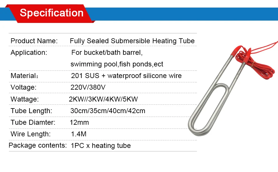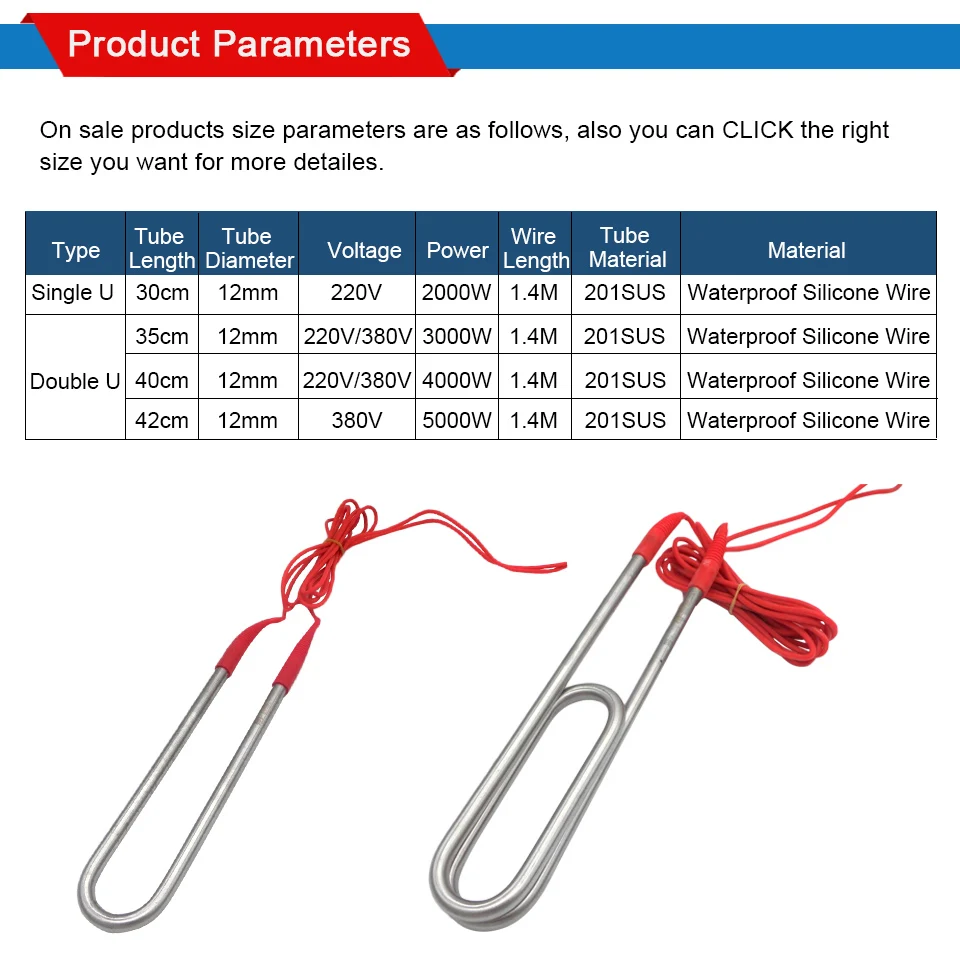 LJXH 온수기 요소 수영장 용 잠수정 히팅 파이프, 버킷 용 히터, 2000W/3000W/4000W/5000W, 220V, 201SUS