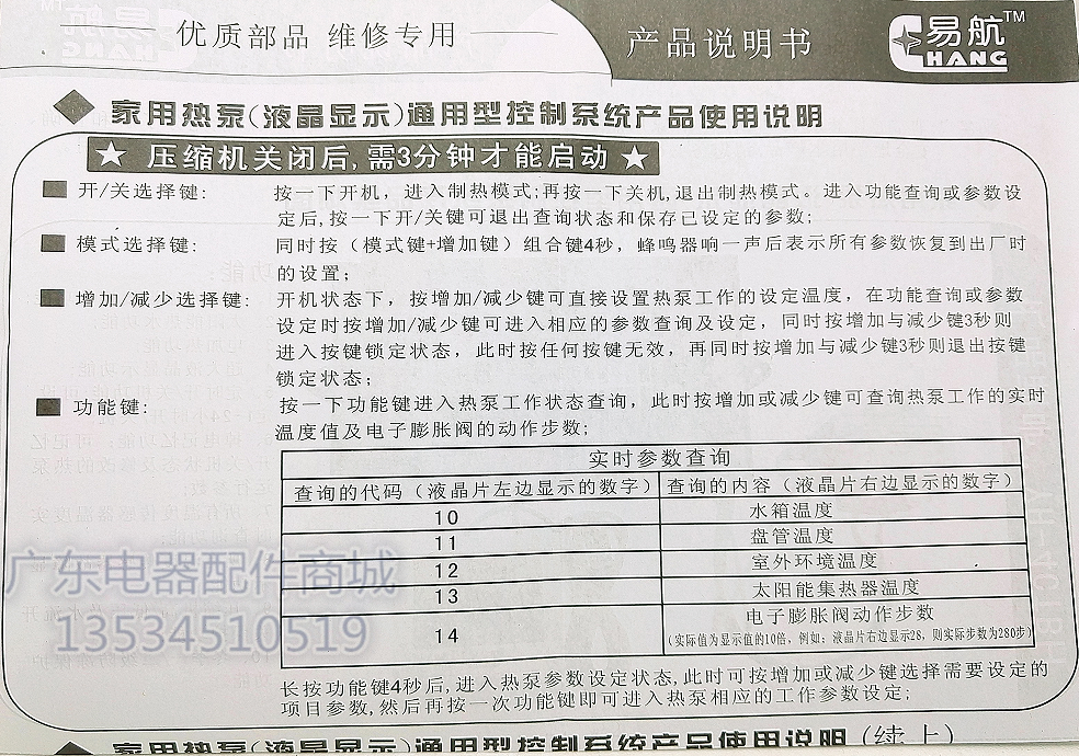 5, power-down memory function, can remember the on/off status and modified heat pump operating parameters