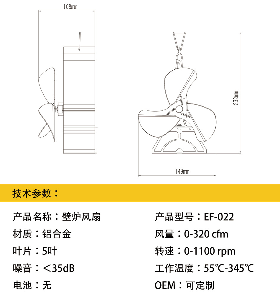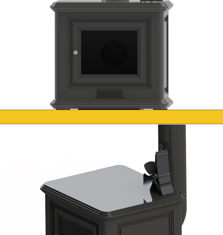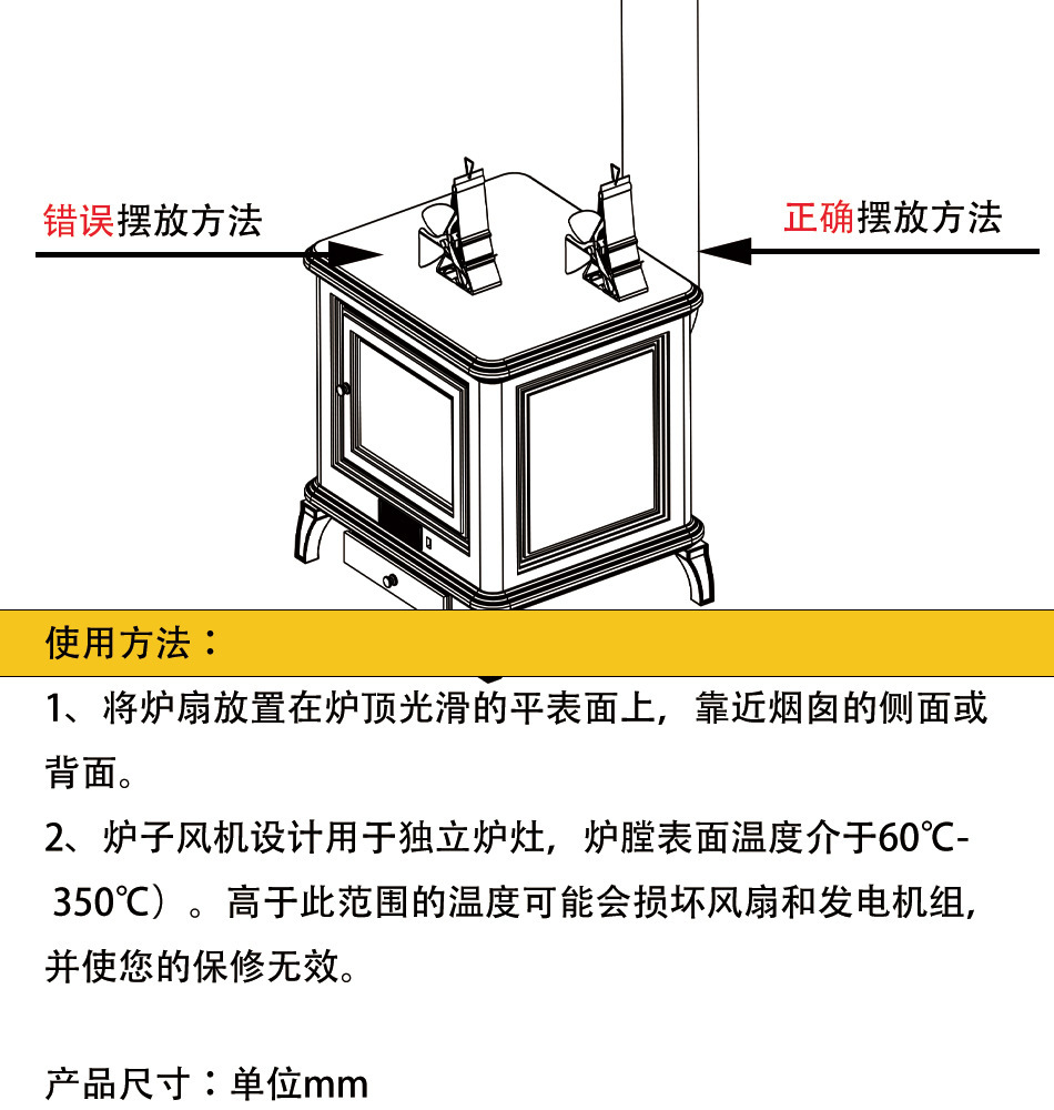 也就是?,只要把?放在燃?的?子上?,?就?吸收?能???扇??,?而?燃木壁?上方的?空?直接吹向生活?,增加房?中的空?流通,提升火?的加?效率