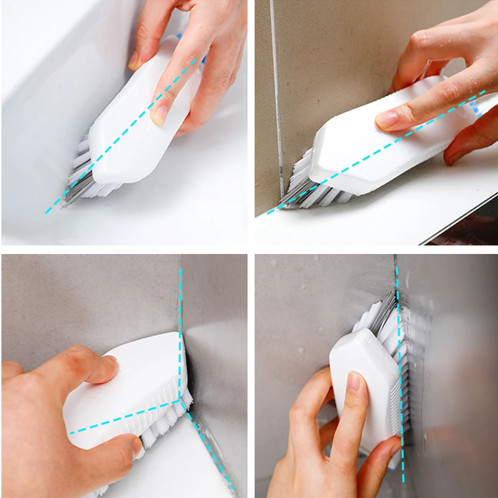 4 In 1 V 자형 스크러버 브러시 주방 욕실 타일 바닥 갭 청소 창 그루브 벽 코너 화장실 브러쉬 도구
