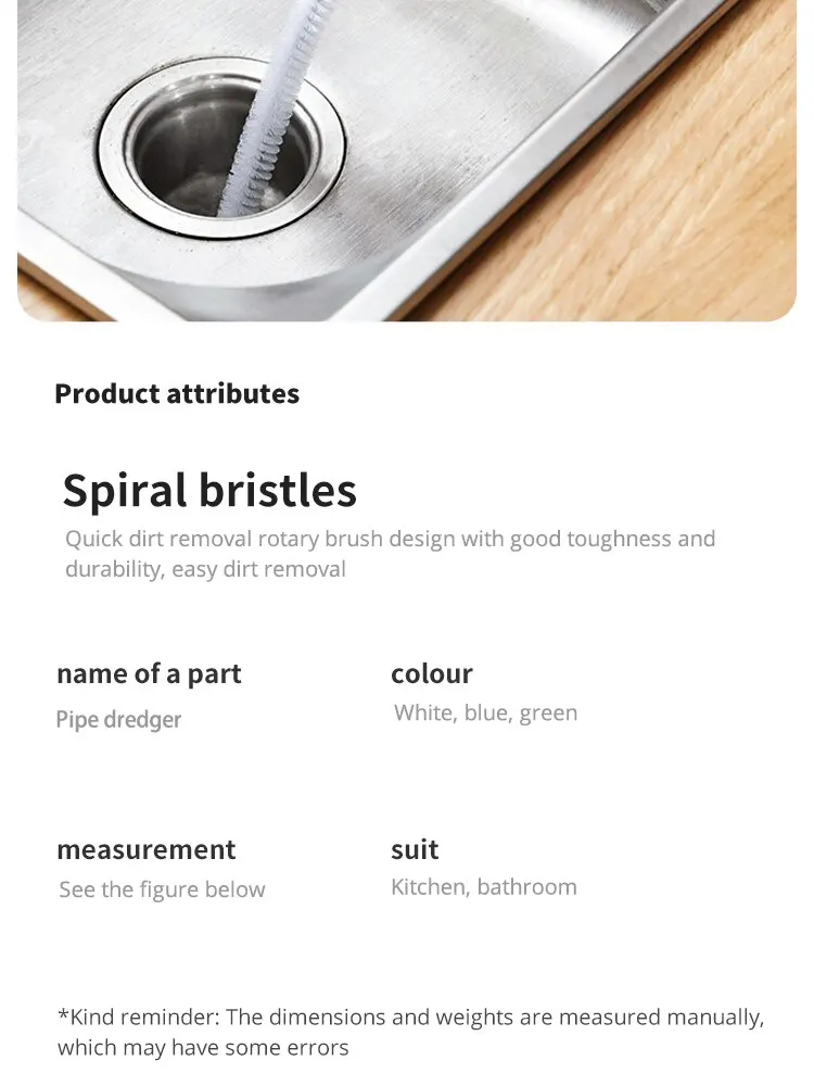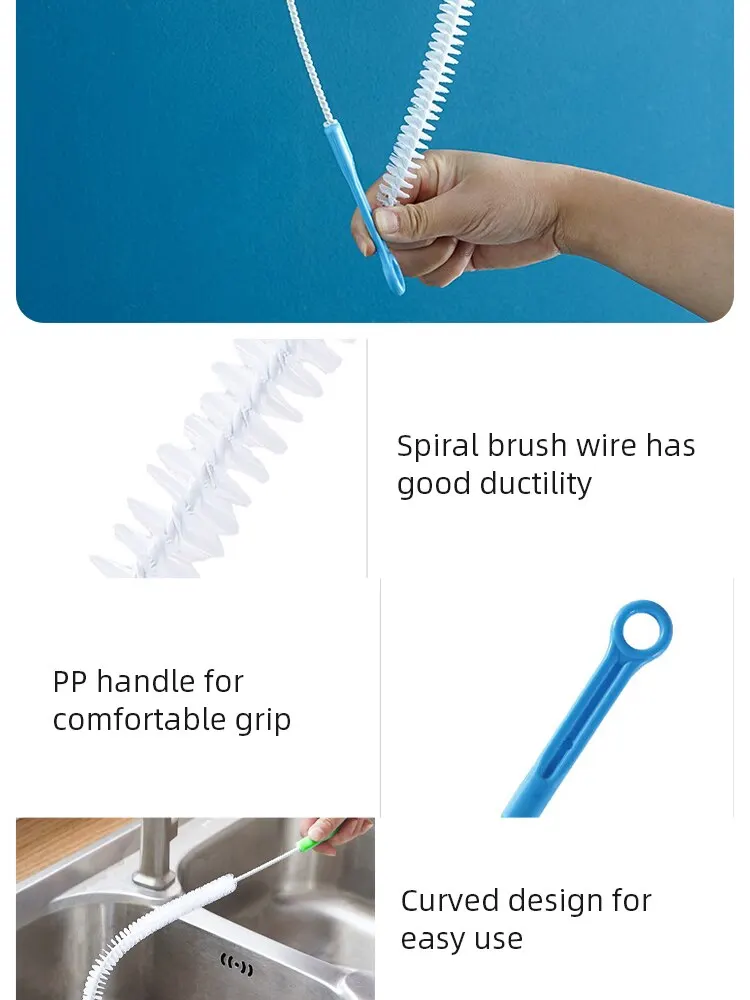 파이프 준설 브러시 욕실 하수구 머리 제거 싱크 청소 48/65/71cm 드레인 클리너 구부릴 수있는 유연한