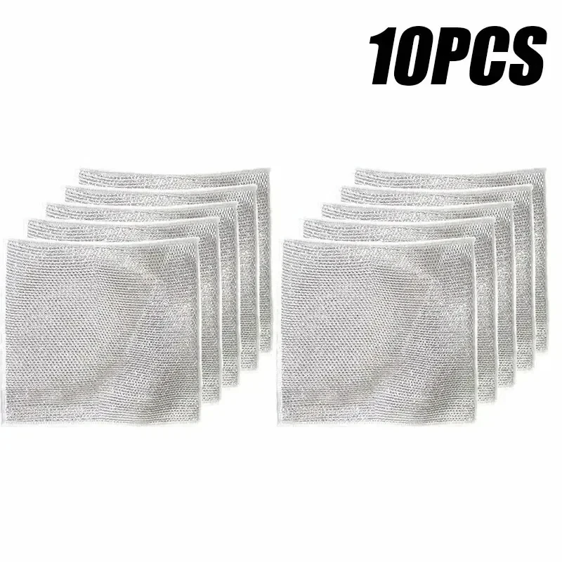 10pcs 매직 행주 실버 와이어 청소 주방 천으로 두꺼운 마이크로 화이버 워시 타올 내장 스폰지 스틸 볼