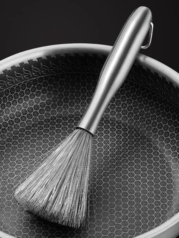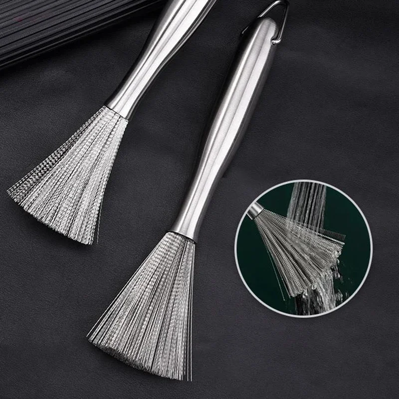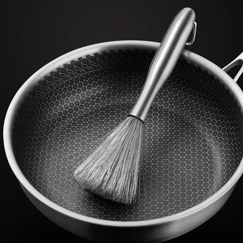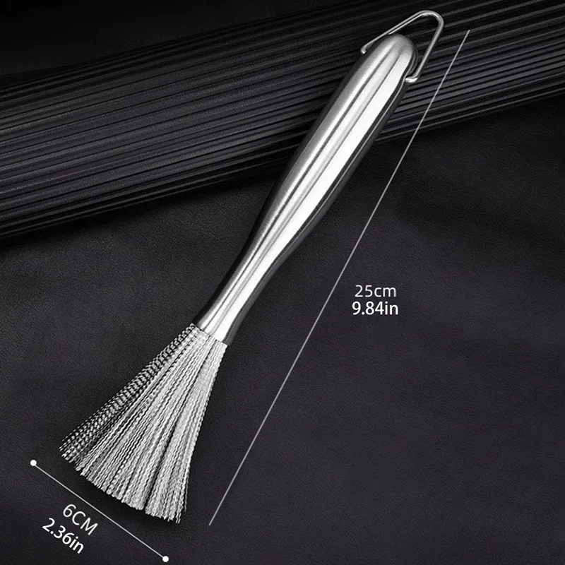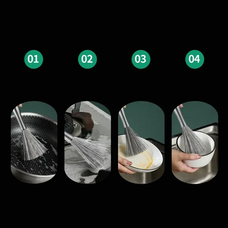 긴 손잡이가있는 스테인레스 스틸 팬 브러시 식기 세척 냄비 클리너 강력한 오염 제거 Hangable 주방 청소