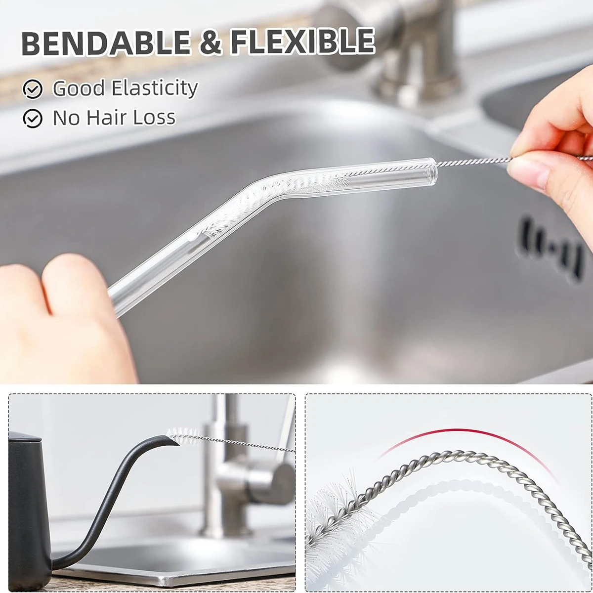 10pcs 6/8/10 인치 밀짚 클리너 브러시 키트 유리 빨대 물병 컵 튜브에 대 한 10mm 304 스테인레스 스틸