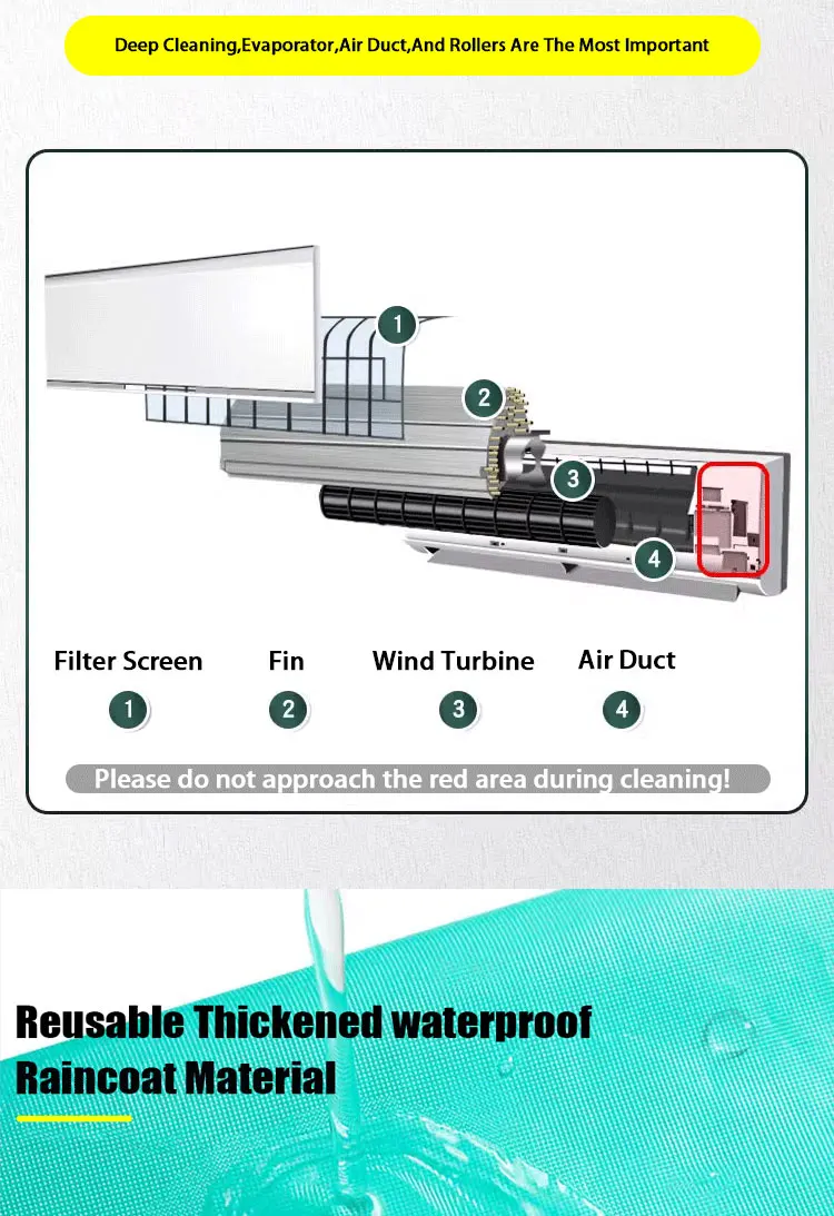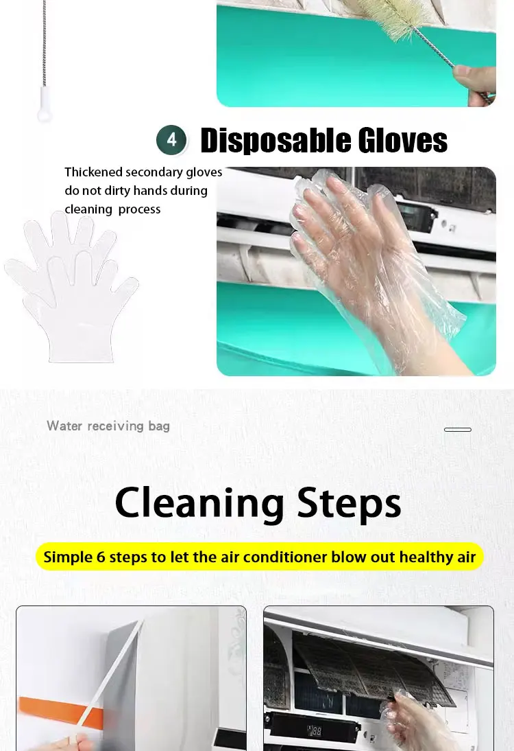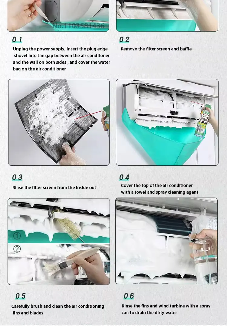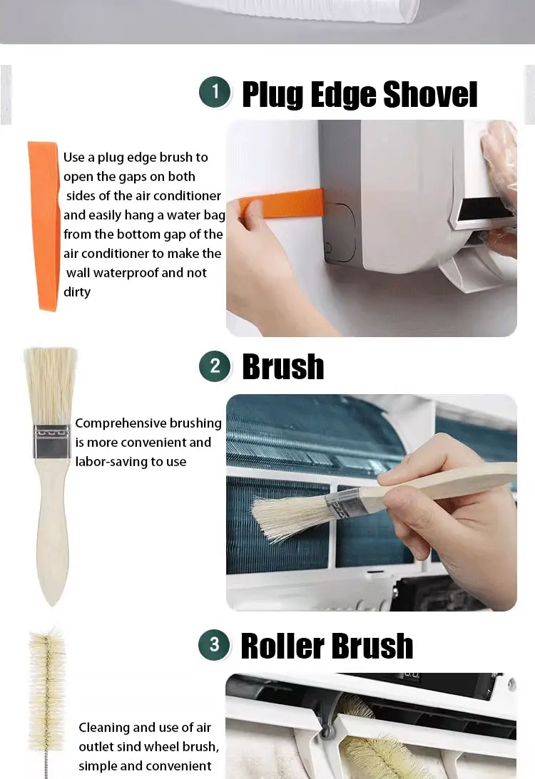 에어컨 청소 키트 누출 방지 커버 물 파이프 분해가 없는 도구가 포함된 공기 벽걸이형 분할 풀 세트