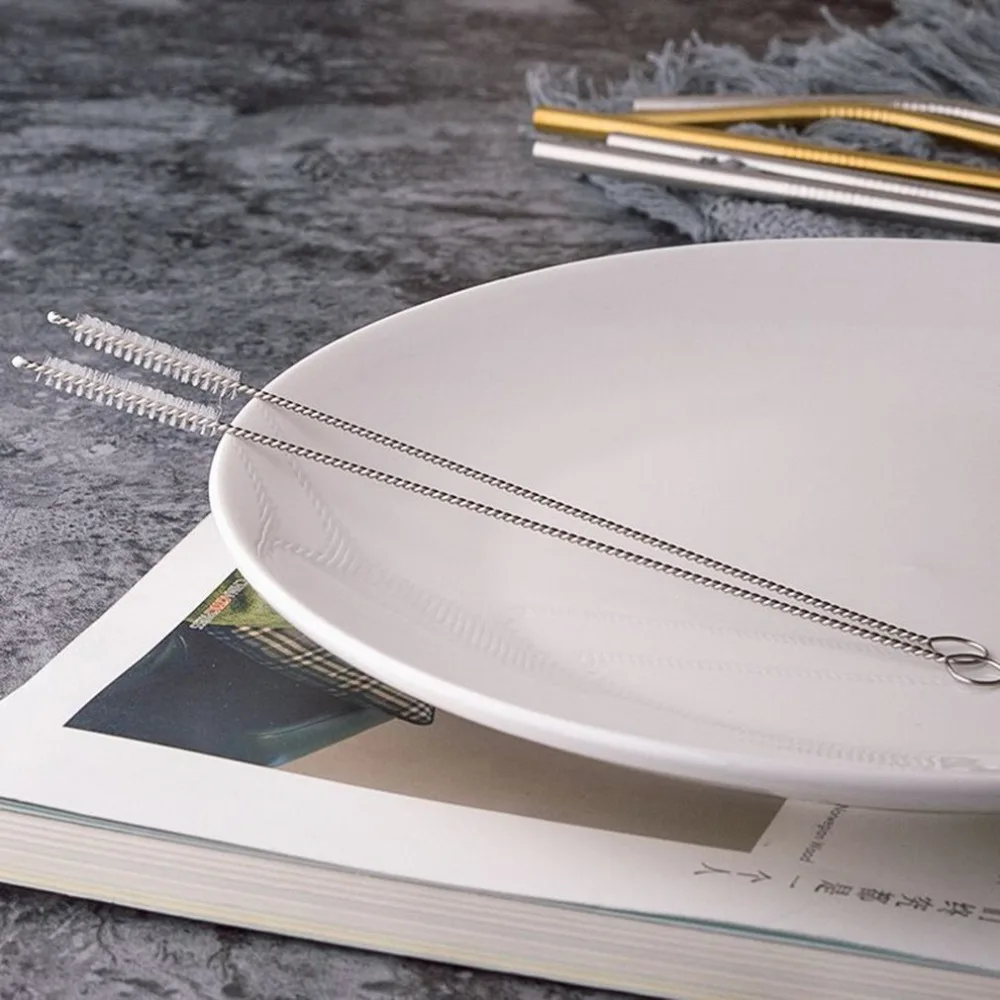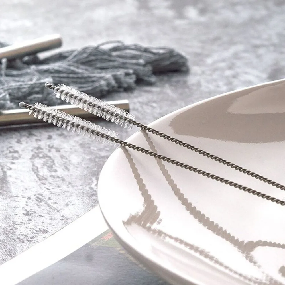 10pcs 6mm 마시는 빨대 청소 브러쉬 스테인레스 스틸 부드러운 머리 유리 튜브 클리너 재사용 가능한 밀짚