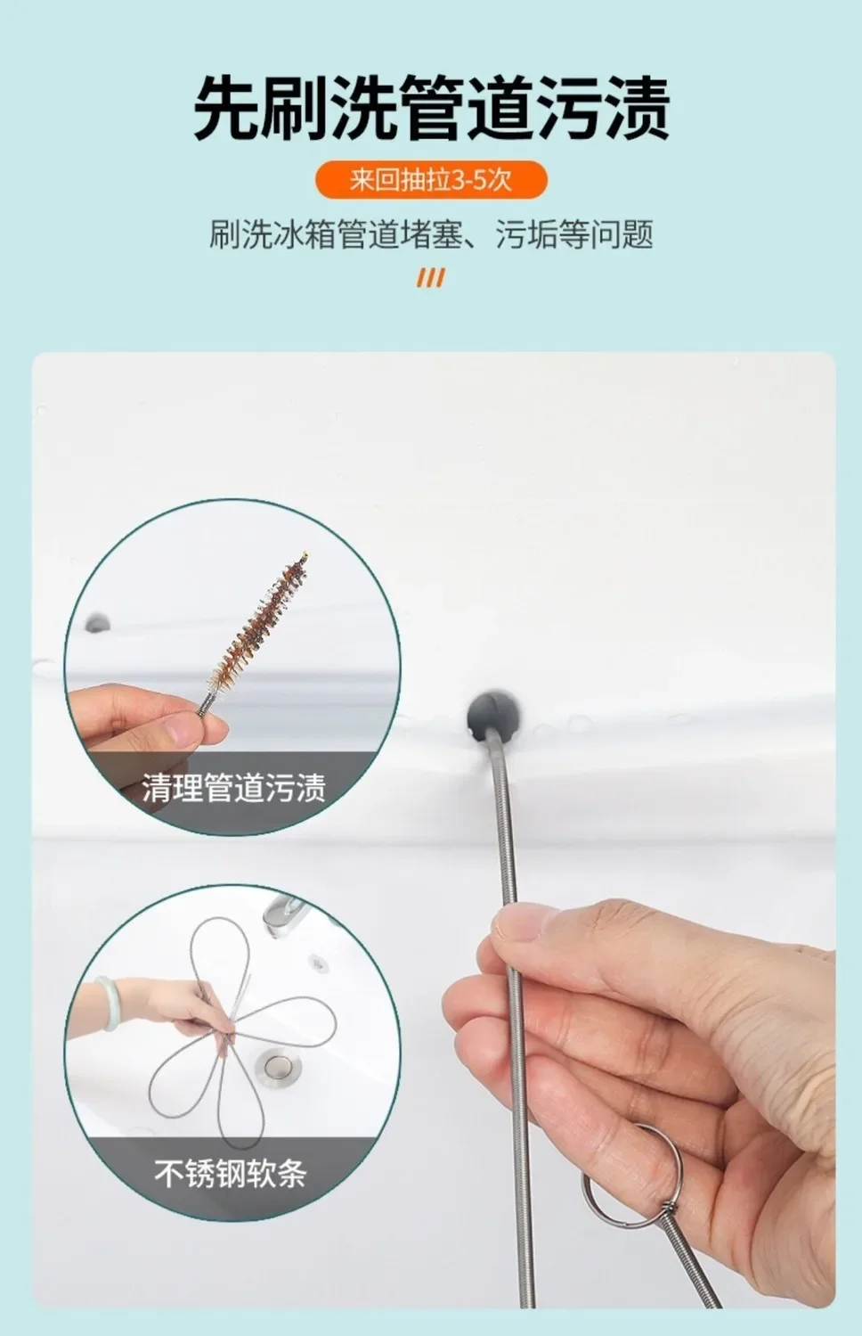 냉장고 배수 준설 브러시 물 도구 튜브 청소 코일 세트 긴 유연한 스크럽 브러시
