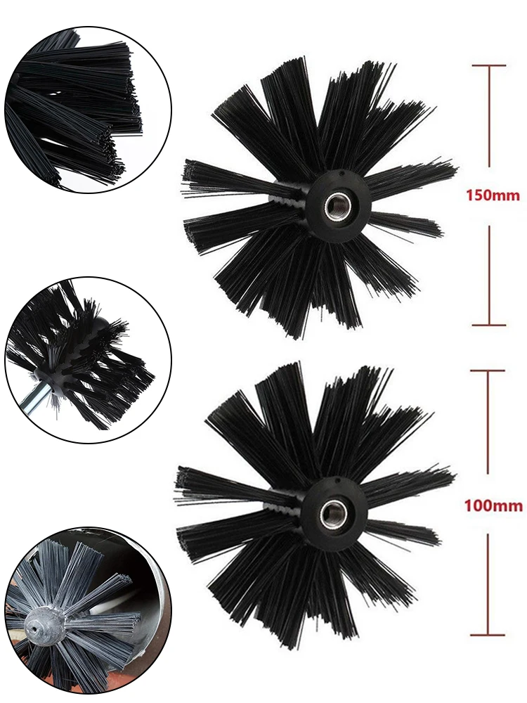 굴뚝 브러시 100/150/200mm 나일론 헤드 건조기 벤트 청소 굴뚝 린트 리무버 강모 벽난로 도구
