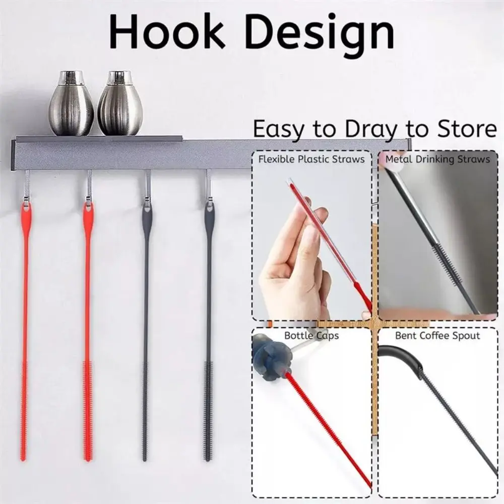식품 등급 파이프 청소 브러시 매우 긴 구부릴 수 있는 실리콘 빨대 클리너 젖꼭지 브러시