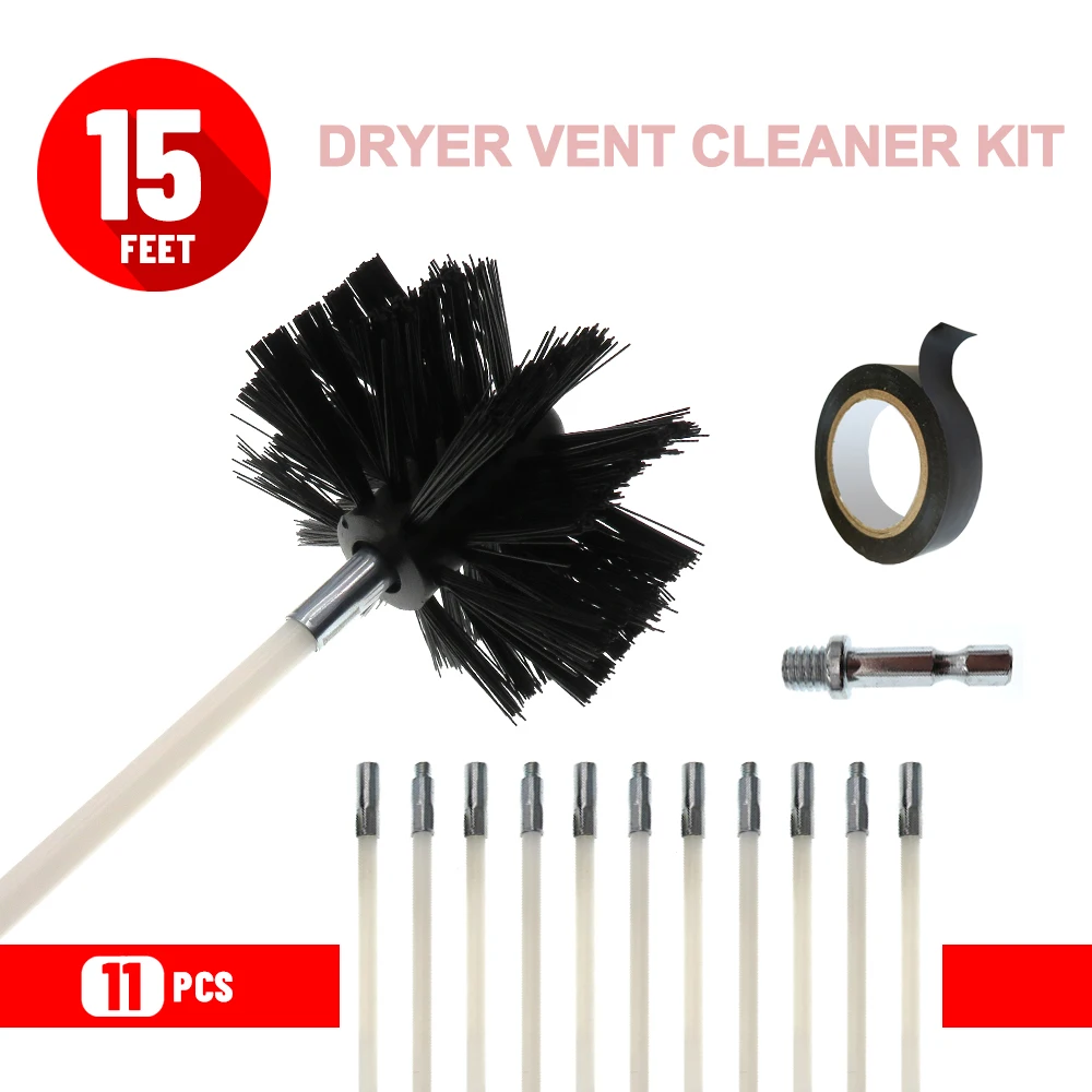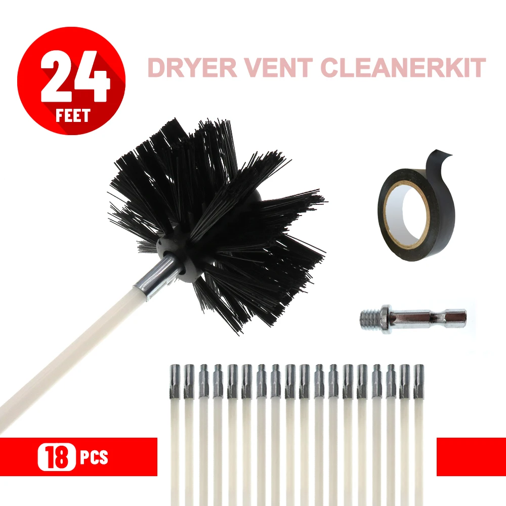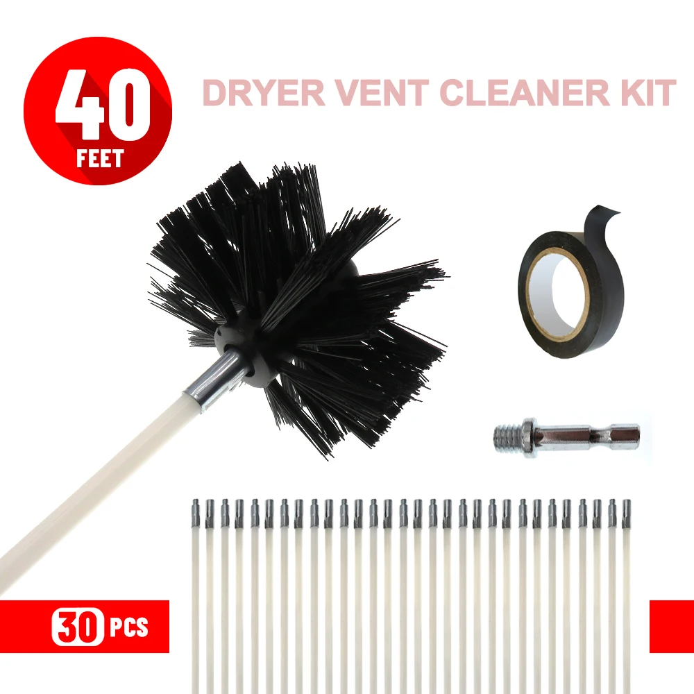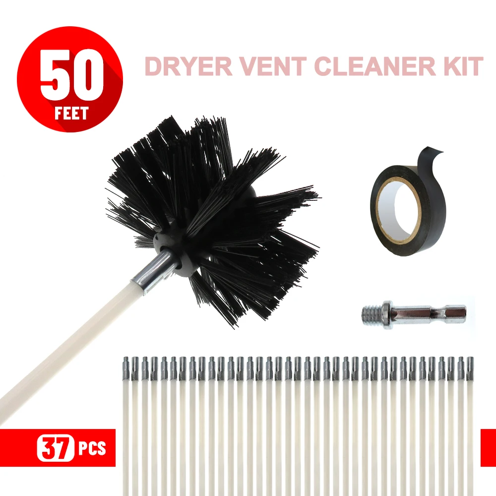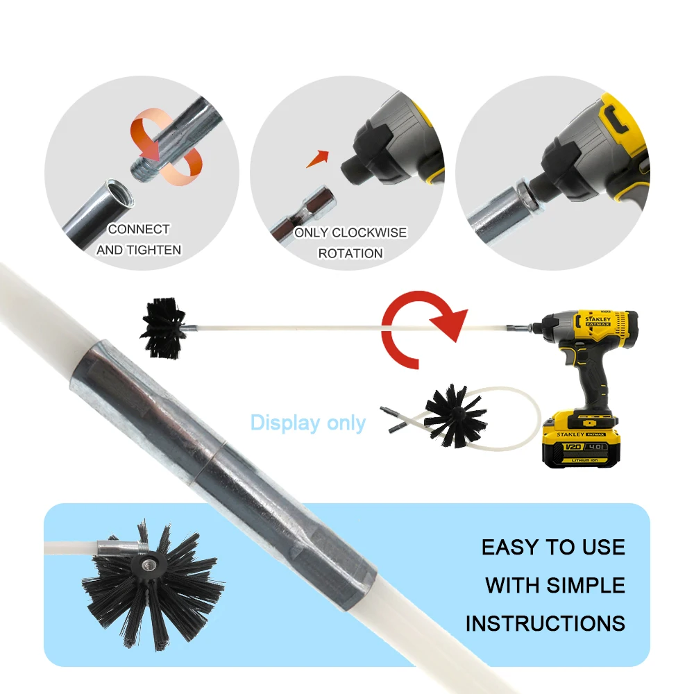 12-50 피트 굴뚝 청소 키트 벽난로 하수관 연기 후드 막대 + 브러시 헤드 육각 용 건조기 벤트 클리너