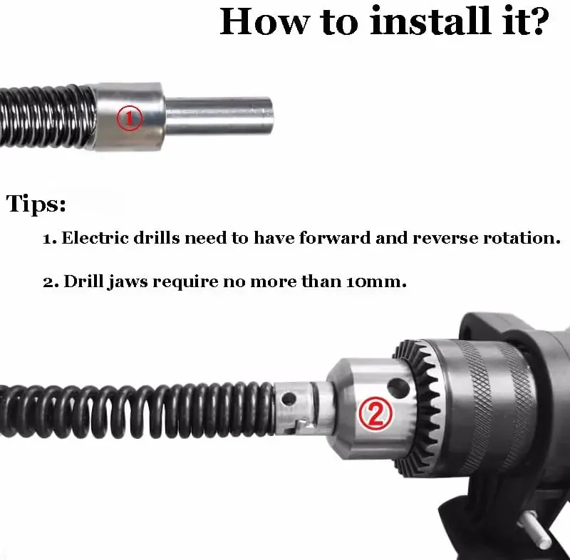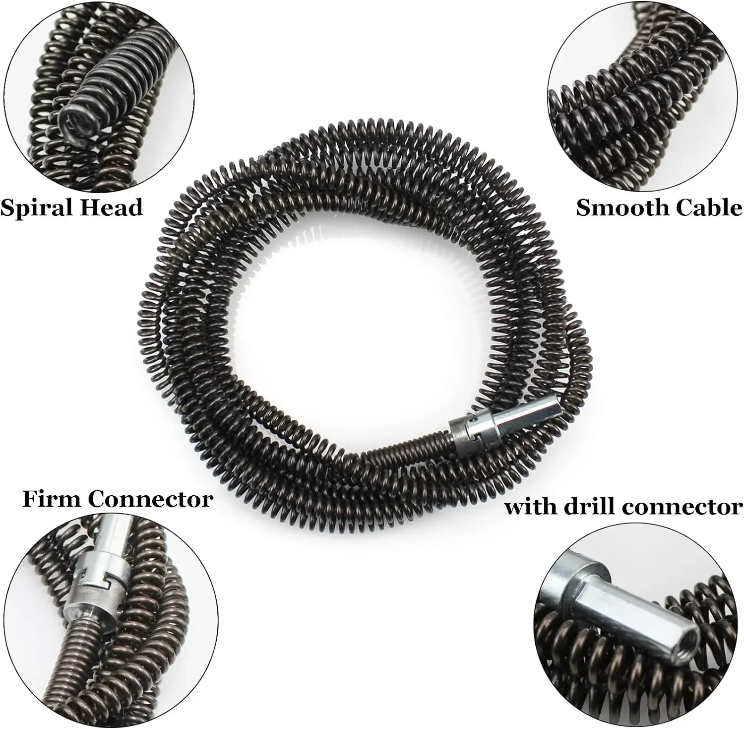 드레인 클로그 리무버 도구 드릴 커넥터가있는 1M 오거 청소 케이블 주방 싱크 욕실 화장실 용 유연한 스네