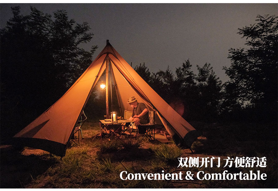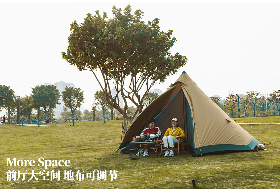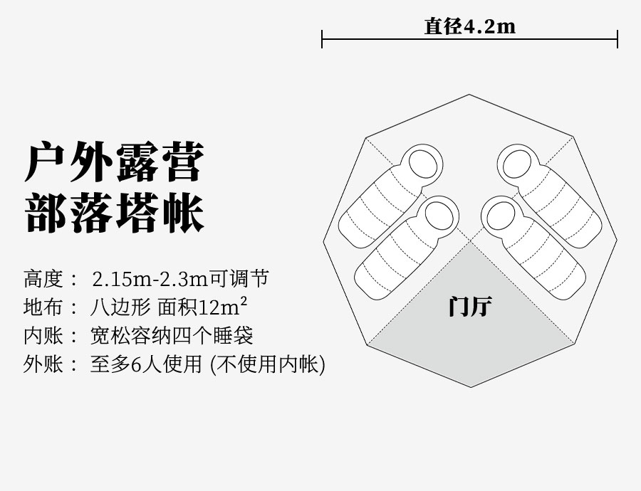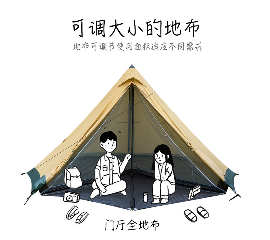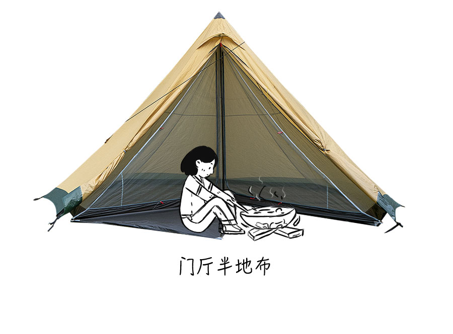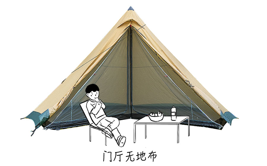 | 텐트 공간 구조 | 방 하나와 거실 하나. |