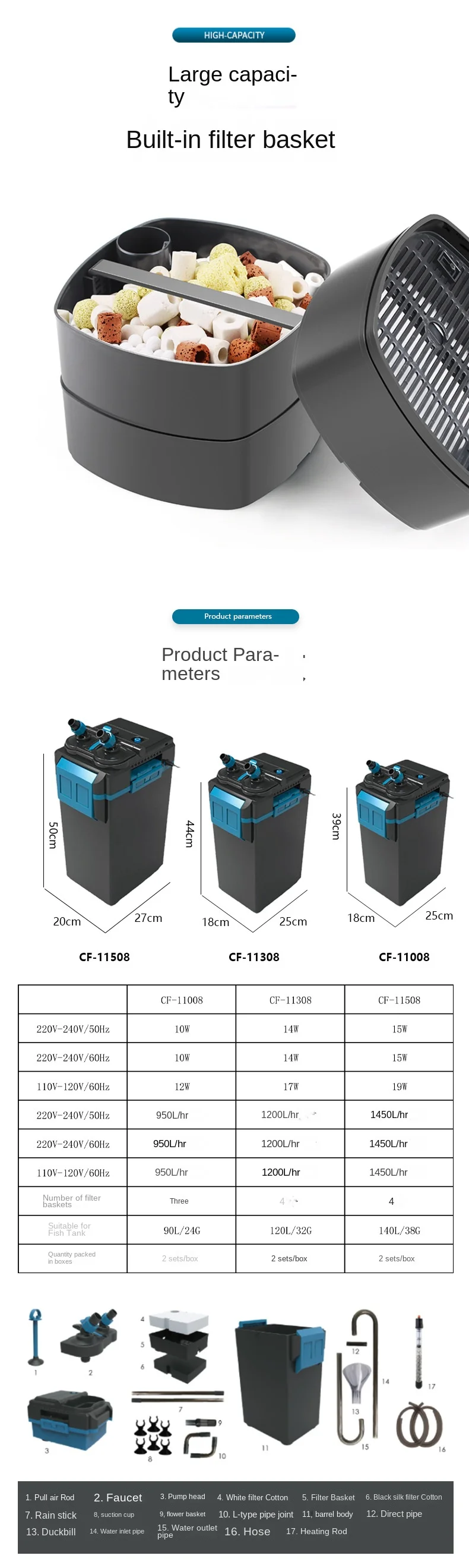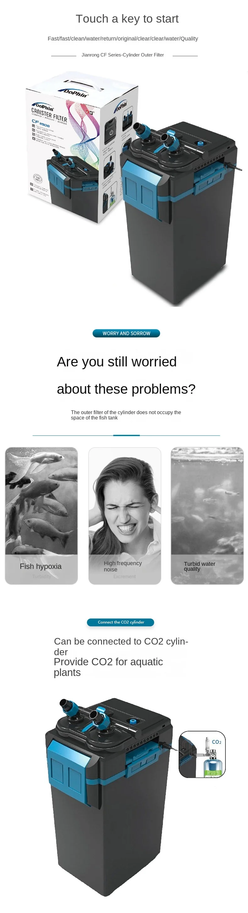 외부 새로운 시작 버킷 어항 클릭 모델 JIANRONG 수족관 필터