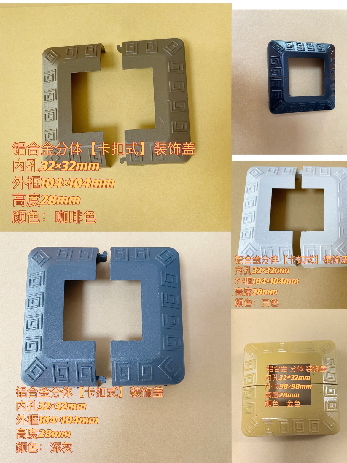 색상 분류 : 16 속길이40MM빅사이즈X외장116MM높이40MM ![]() | 색상 분류 : 17 무지 내장50MMX길이98MM높이36MM ![]() | 색상 분류 : 18 기둥 상단 커버50 120 비고 사이즈 사진 찍기 ![]() |