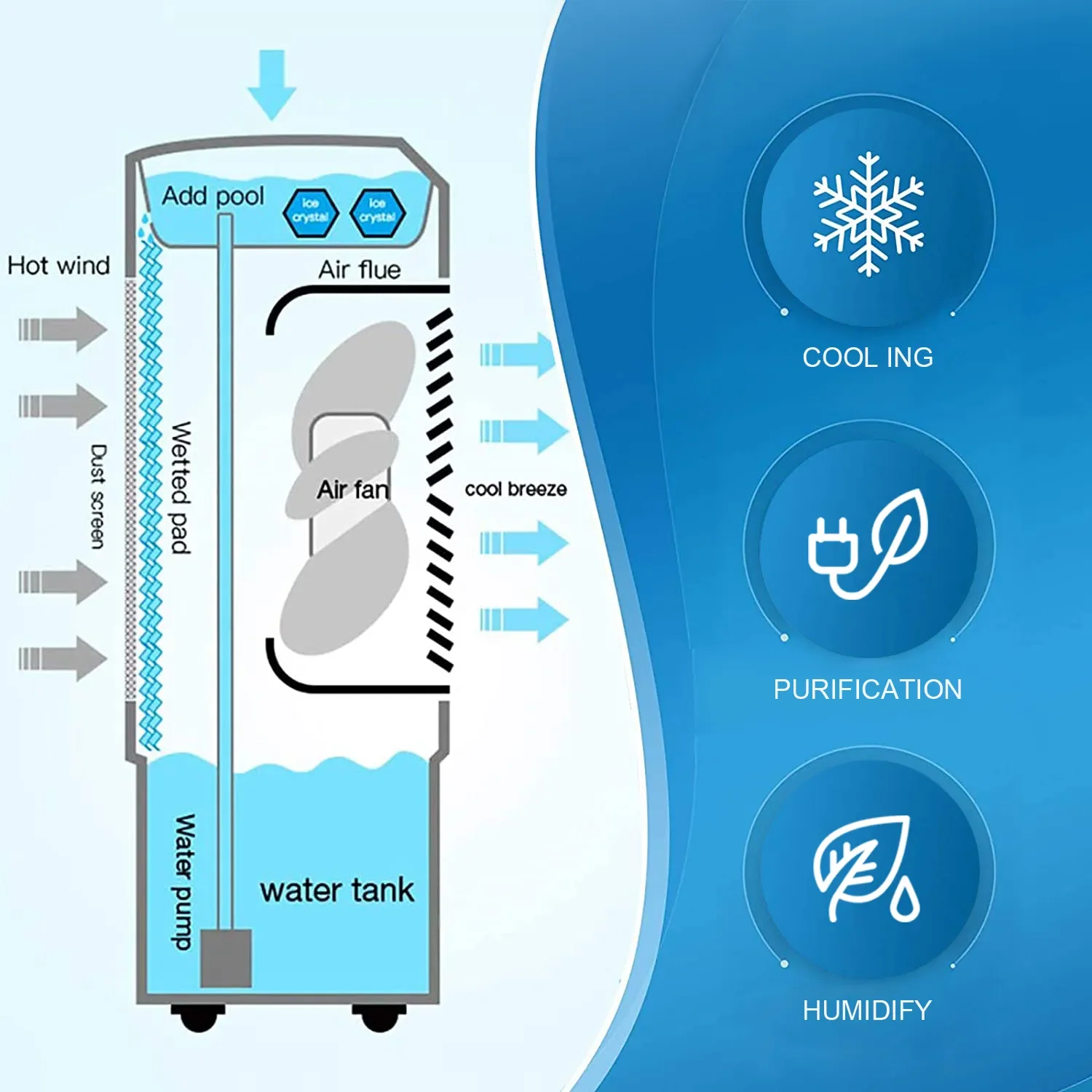| Function | Cooling Ventilation Humidification Air Purifier |