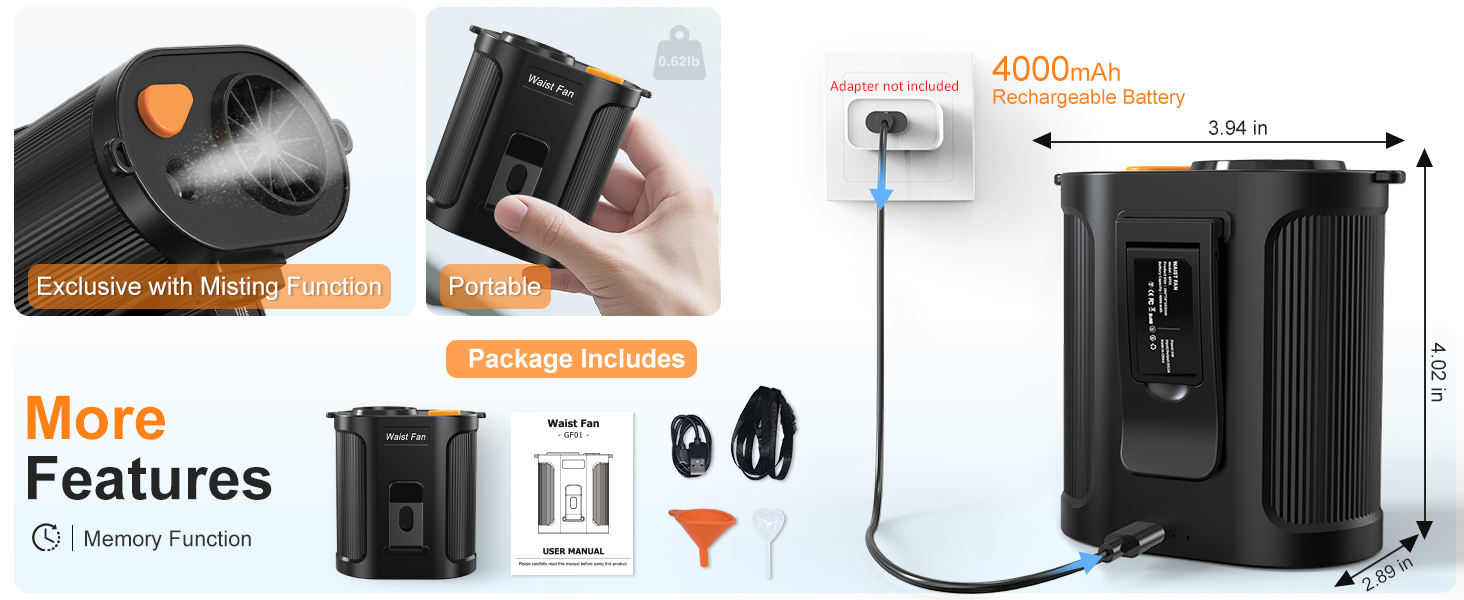 | Included Components | USB-C Charging Cable, Waist fan, Neck Lanyard, User manual |