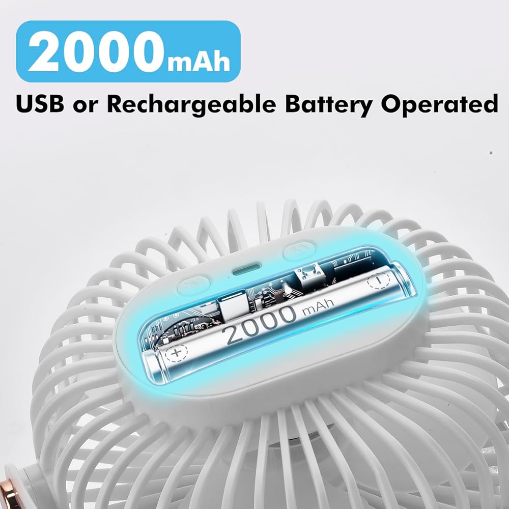 2000mAh 배터리 5단계 풍속 360 수직 및 수평 회전 클립 및 스탠드) 및 LED 조명 초조용 충전식 팬(흰색 6.