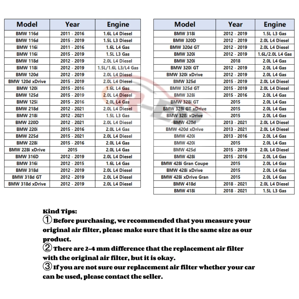 | 차량의 게재 위치 | BMW Air Intake Filter |