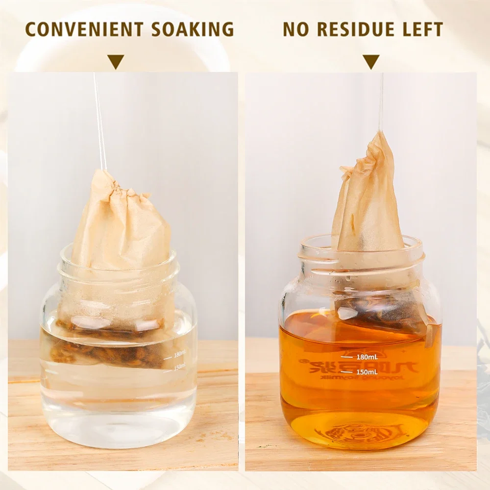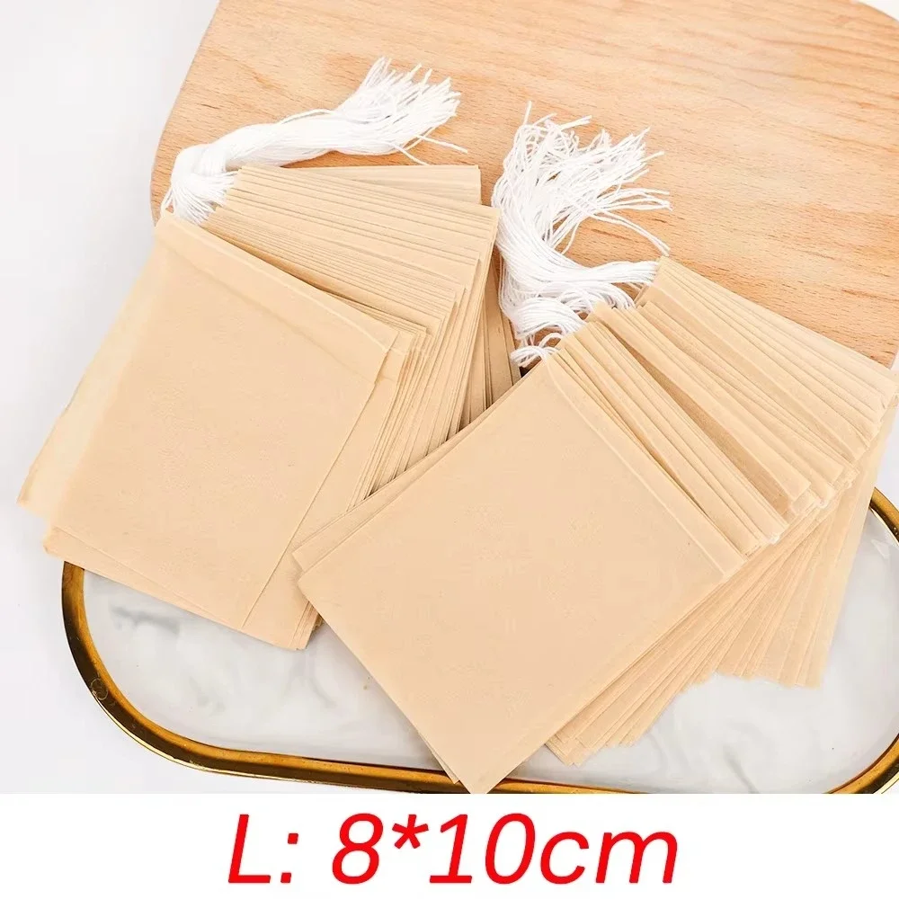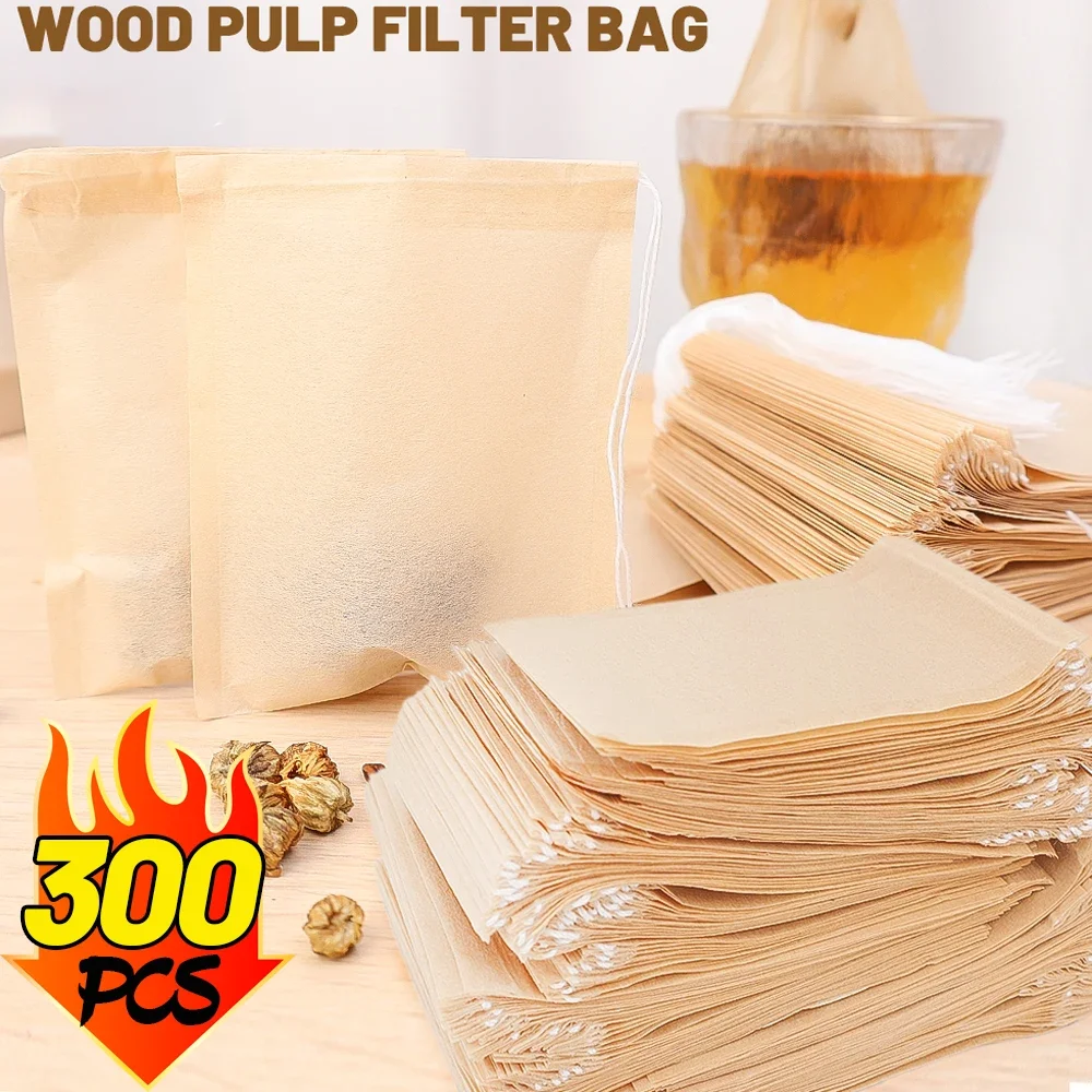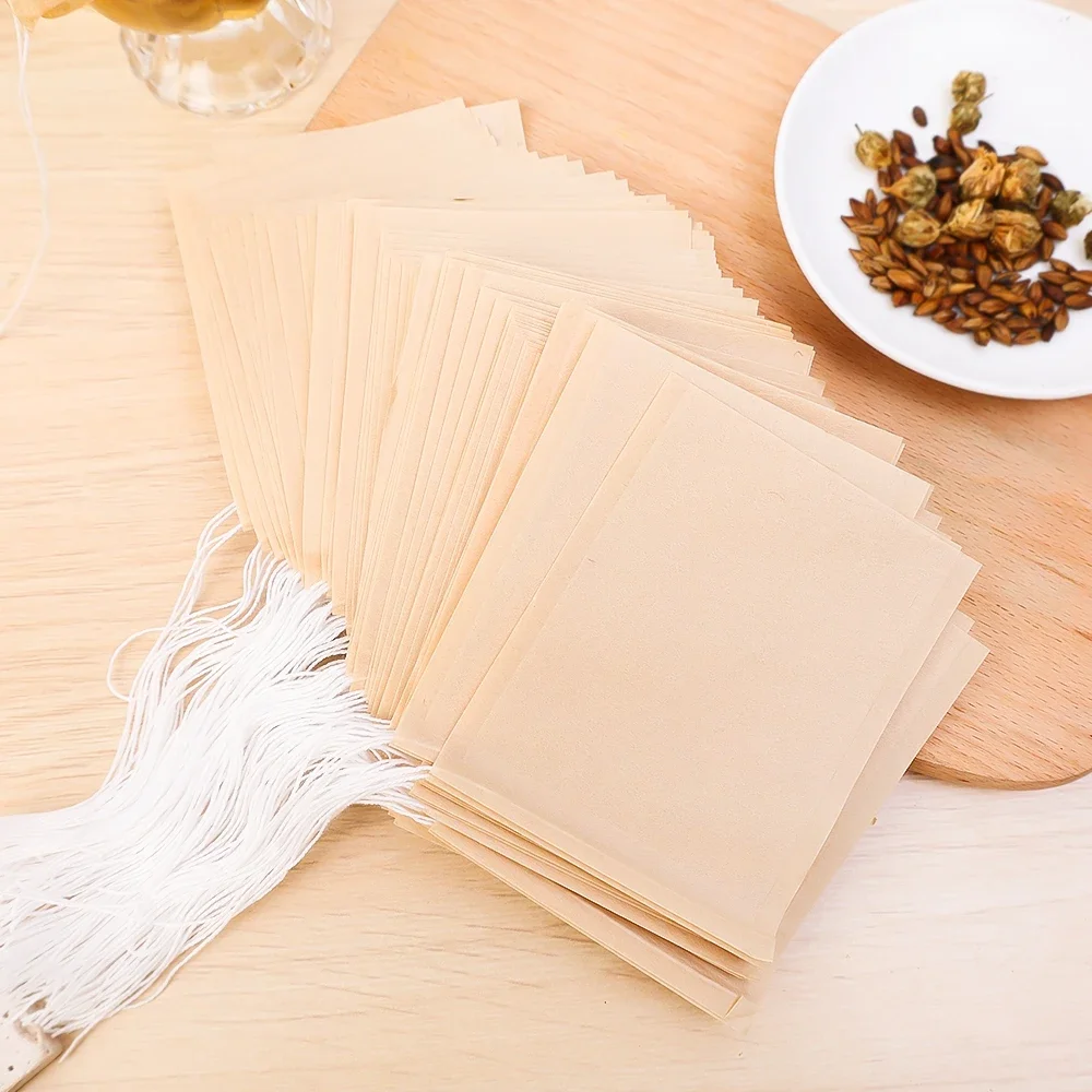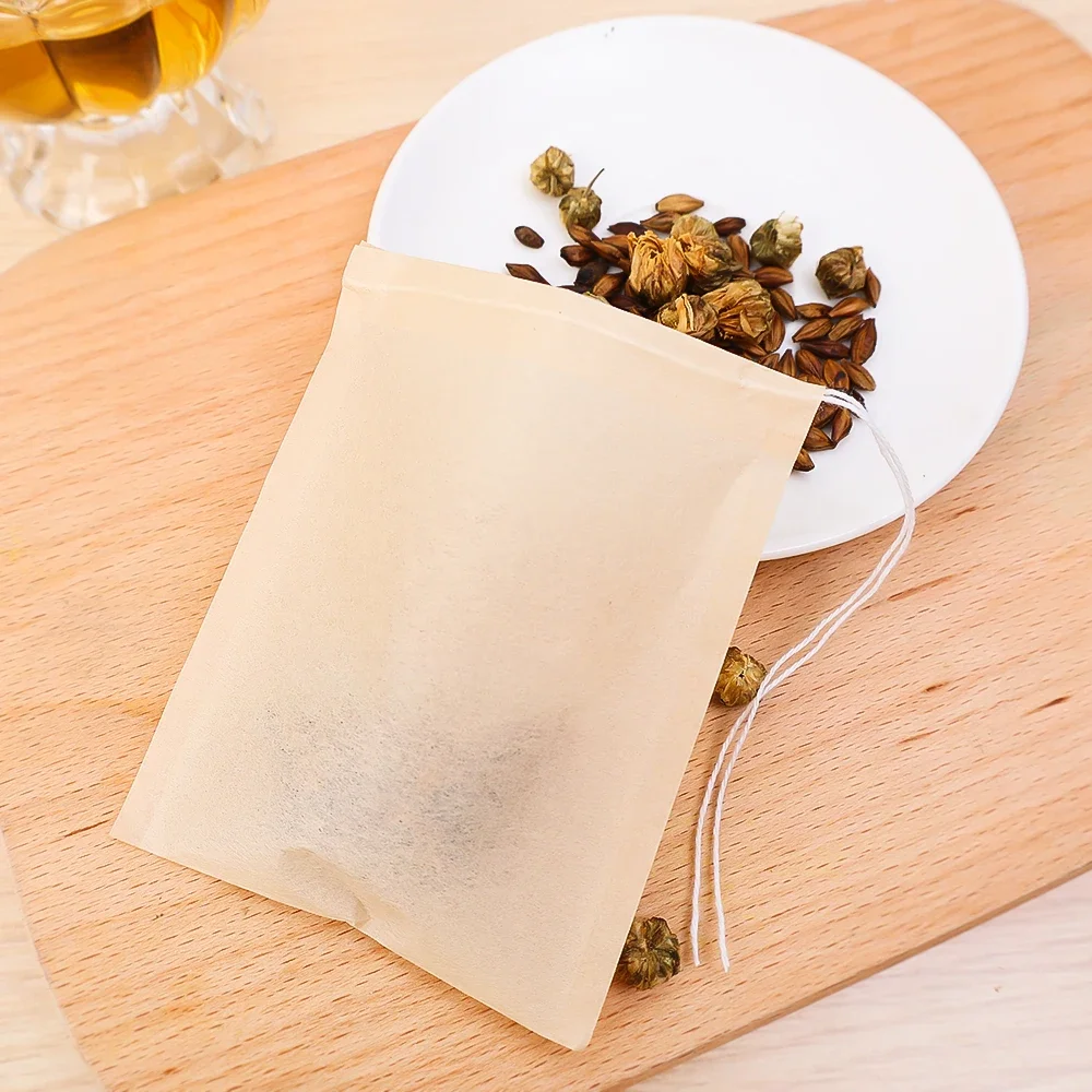 300 100PCS 일회용 목욕을위한 커피 DRAWSTRING 티백 필터 향신료 문자열이있는 종이 생분해 가방