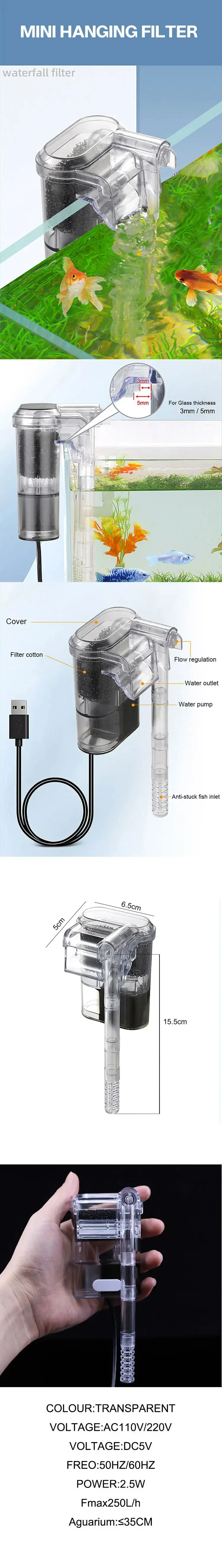 수조용 정지 필터 5W 미니 미만 USB 수족관에 250H 수조 30CM