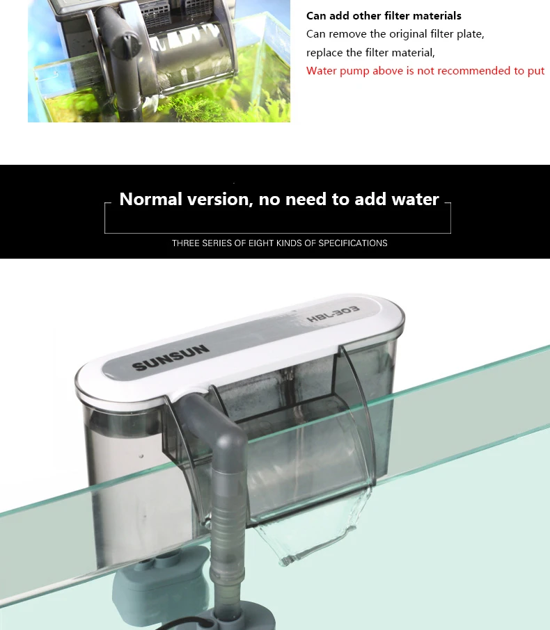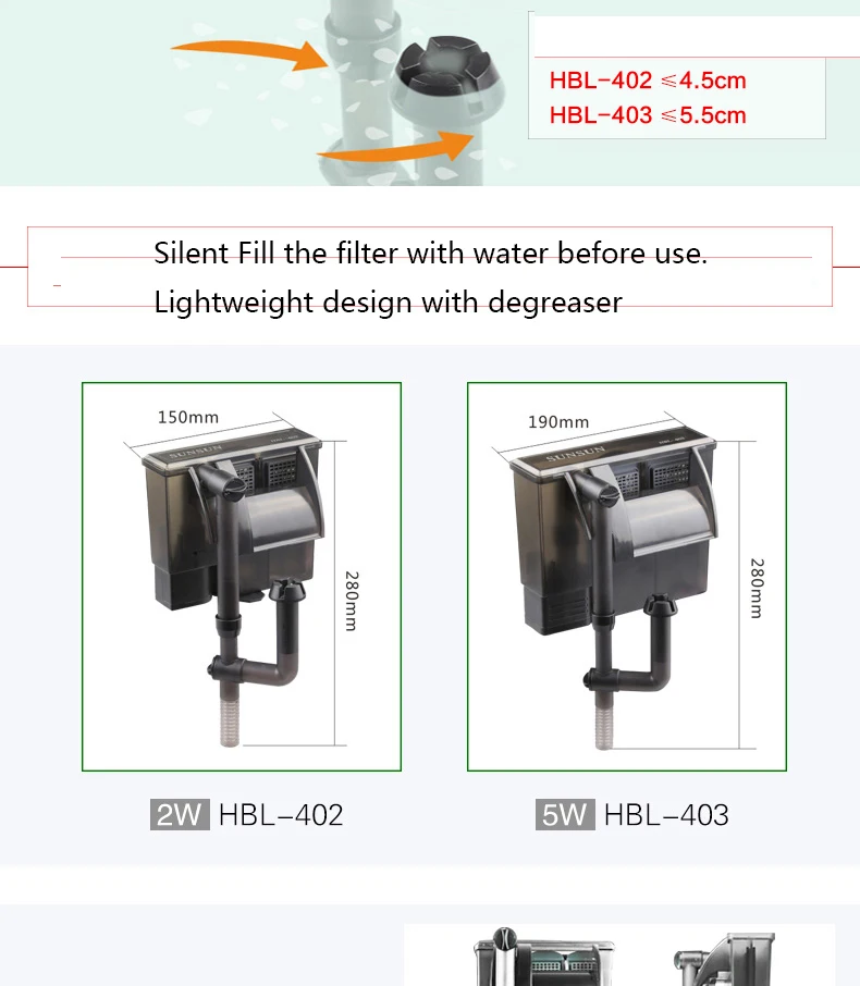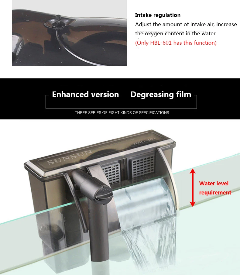 SUNSUN HBL 시리즈 워터 폭포 물고기 펌프 탱크용 스키머 외부 120L 15 거북이 수족관 필터 걸이식