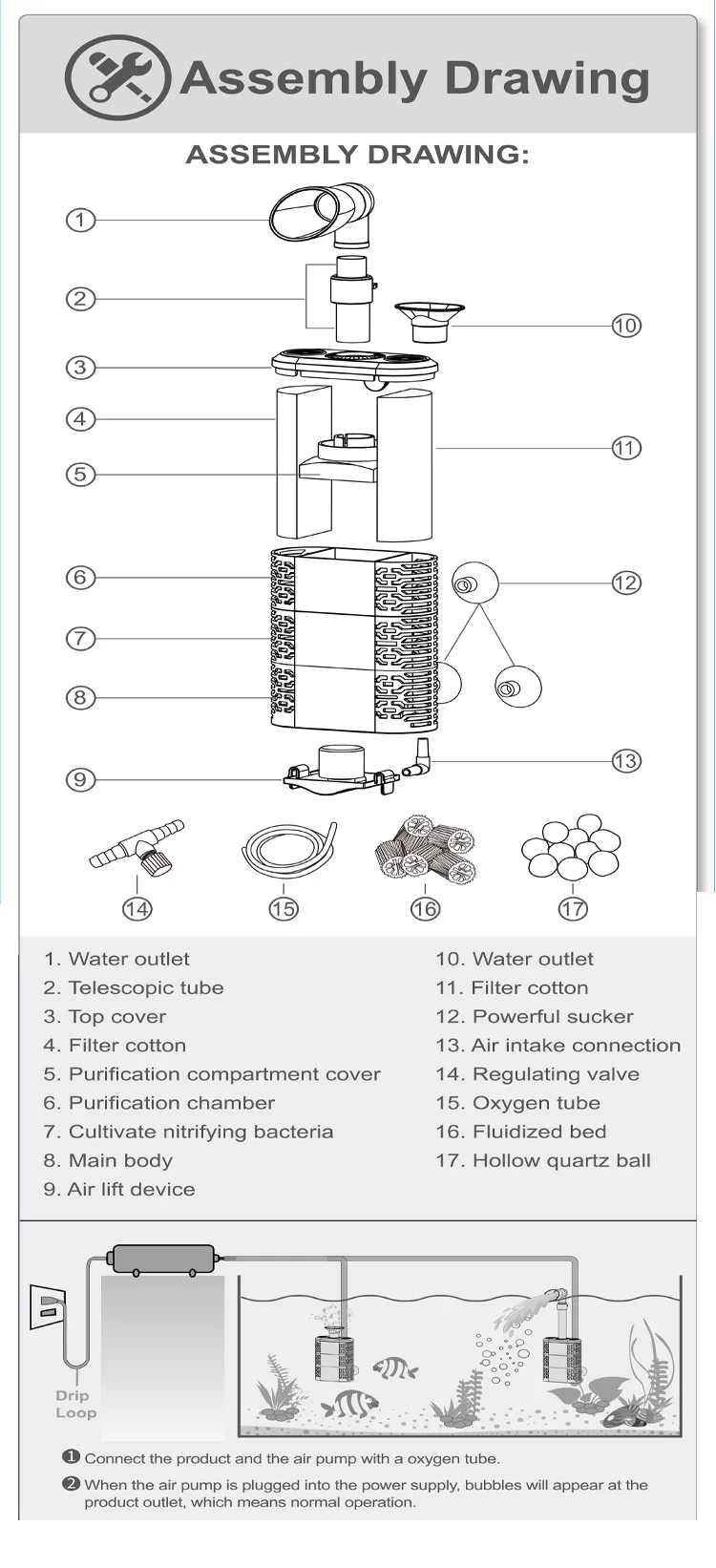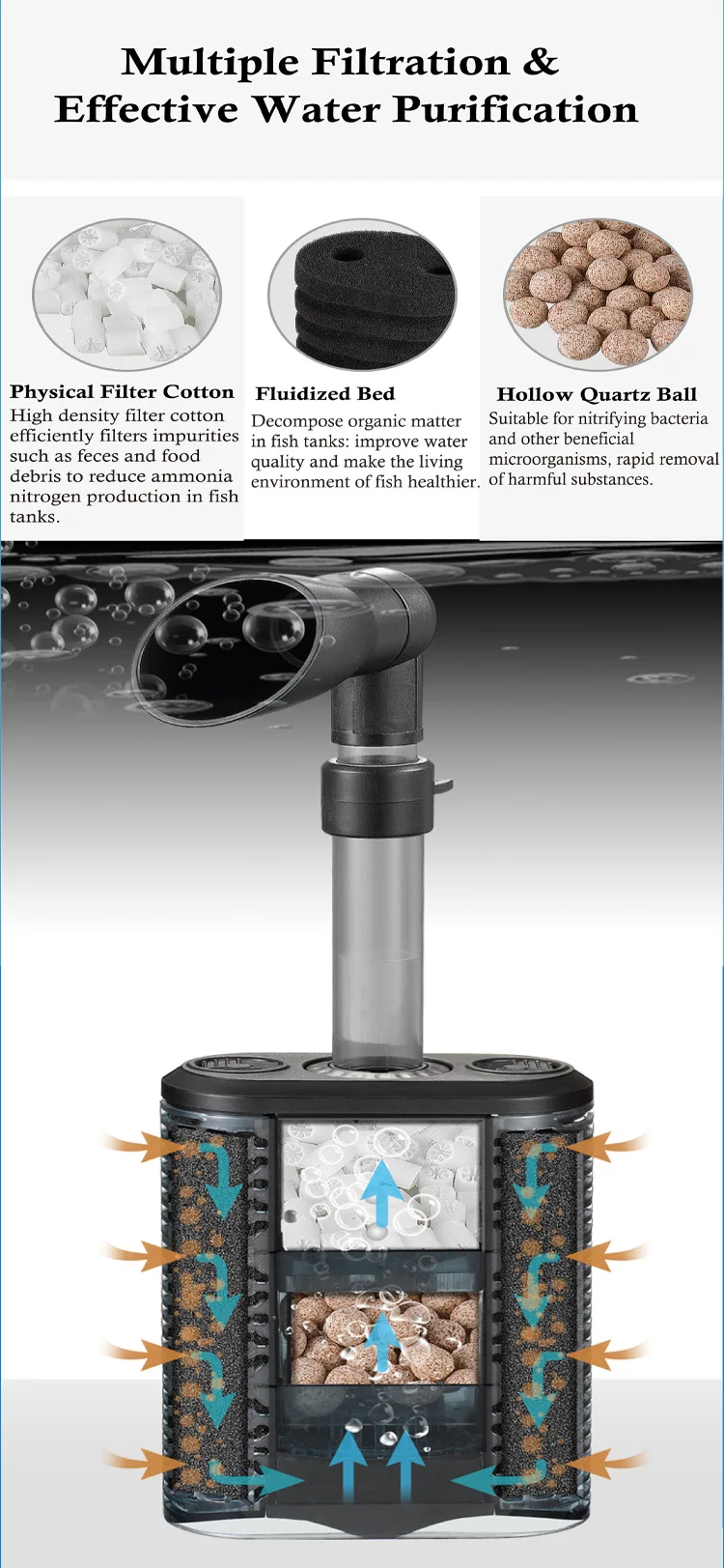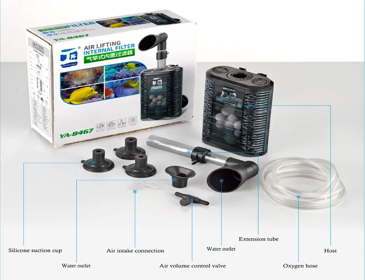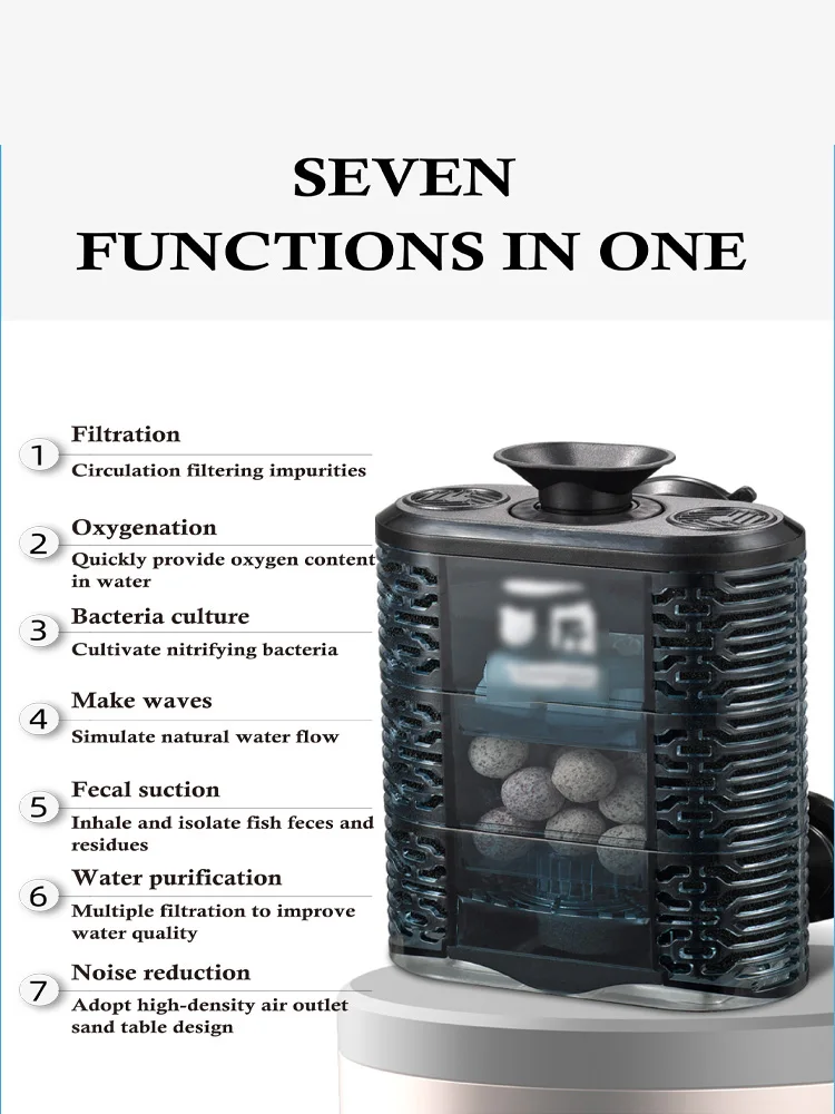 새로운 수족관 필터 박테리아 배양을위한 함량 물고기 탱크 제공 필터링 산소 공기 불순물 내부 리프팅
