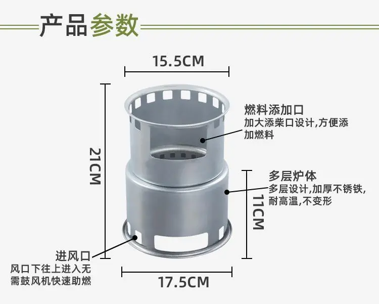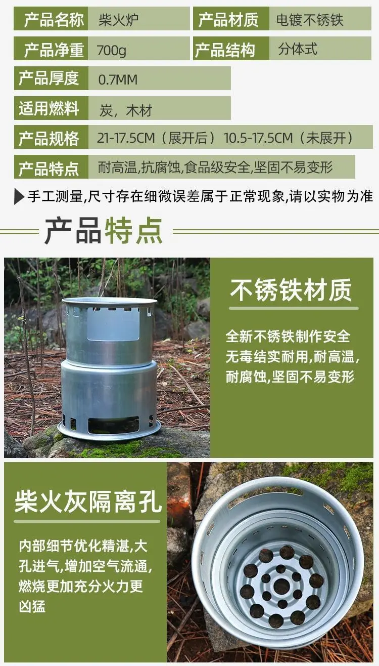 야외캠핑화로대 바비큐용스플릿우드난로 3겹 숯불난로