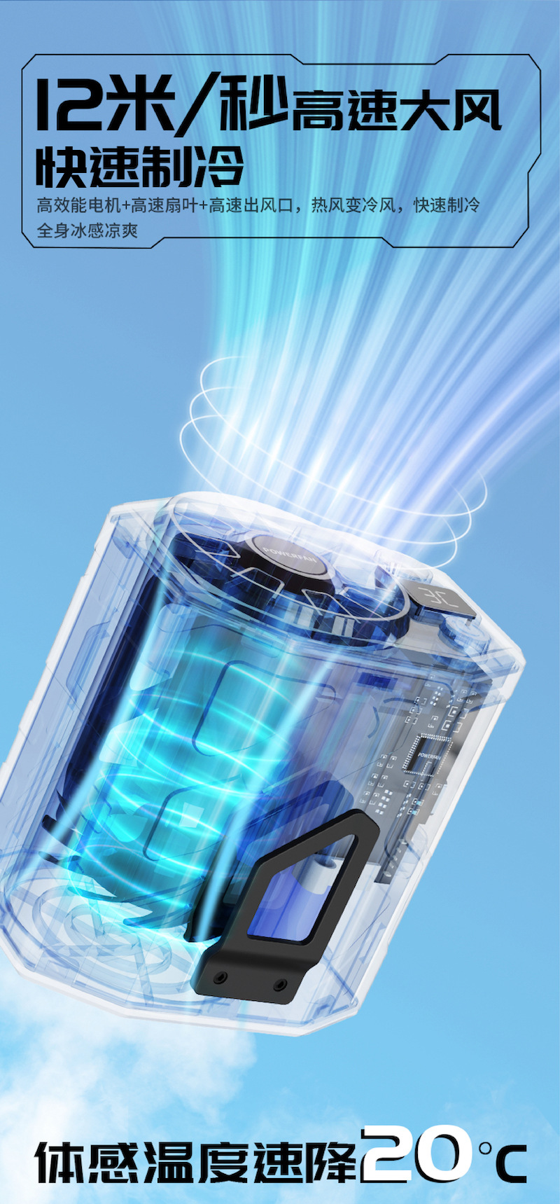 웨어러블에어컨 소형 냉온풍기 충전식 USB 작동 허리선풍기 태그 타이머 책상용