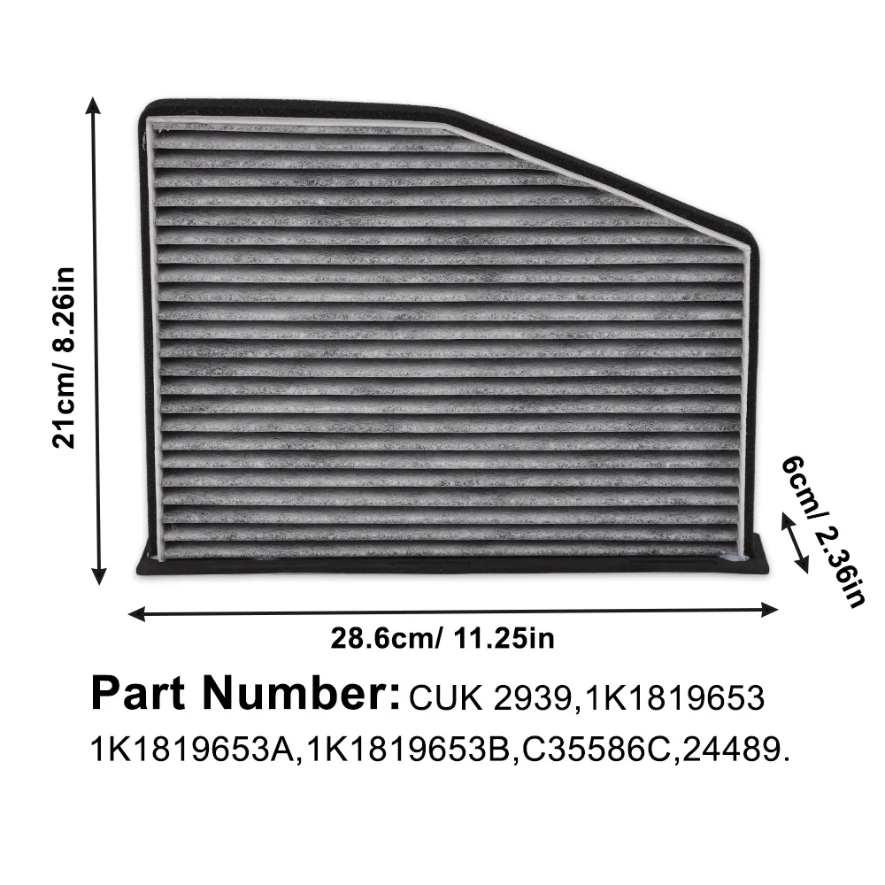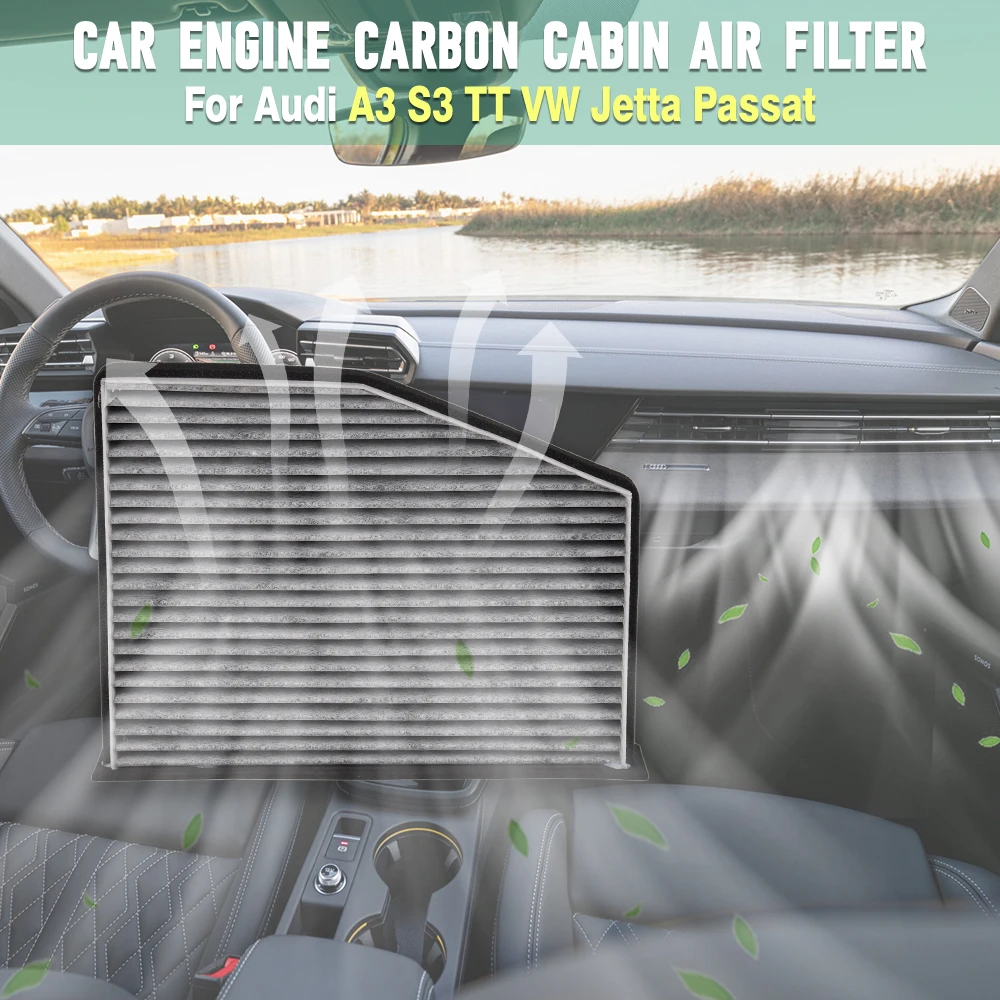 VW BEETLE CC EOS JETTA GTI PASSAT R32 RABBIT TAN TIGUAN A3 Q3 TT 자동차 엔진 카본 캐빈 필터