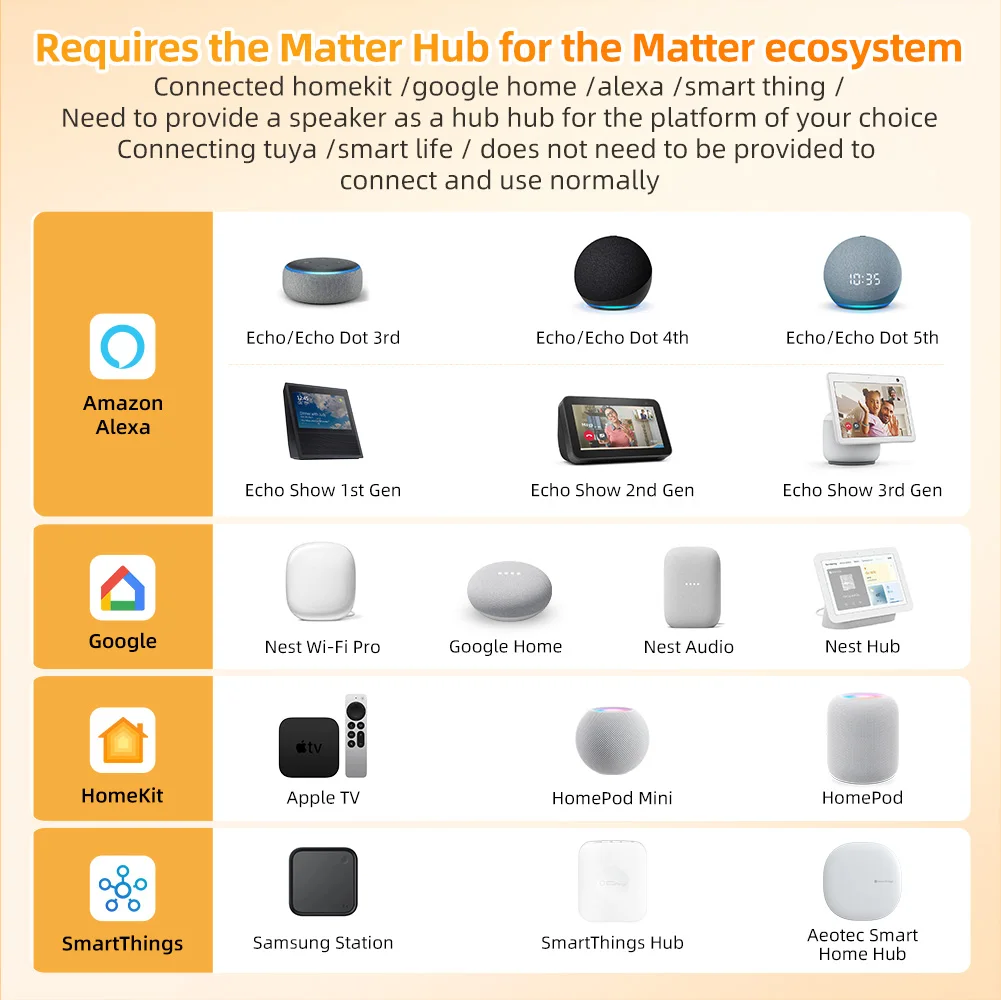 | Voice control | Alexa/Google/Apple/Smartthings |