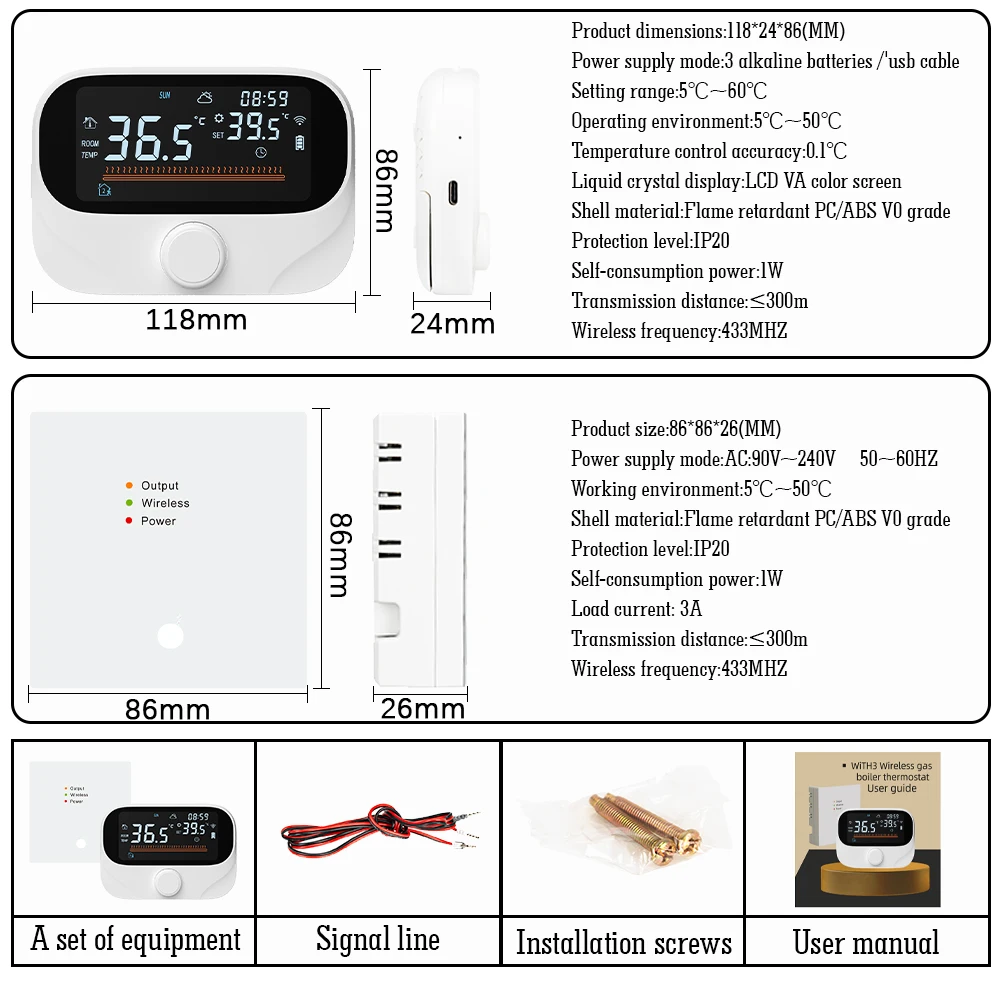 Tuya WiFi Smart Home Wireless Thermostat RF Battery Boiler Water Heating Digital Temperature Con