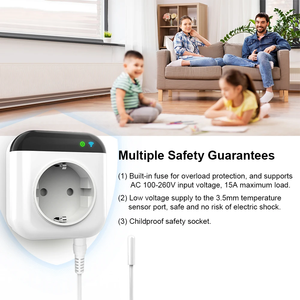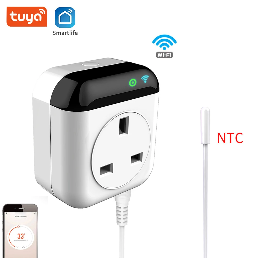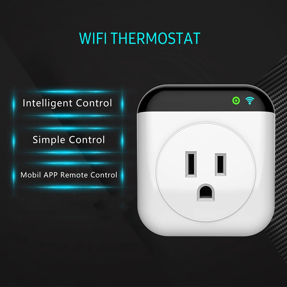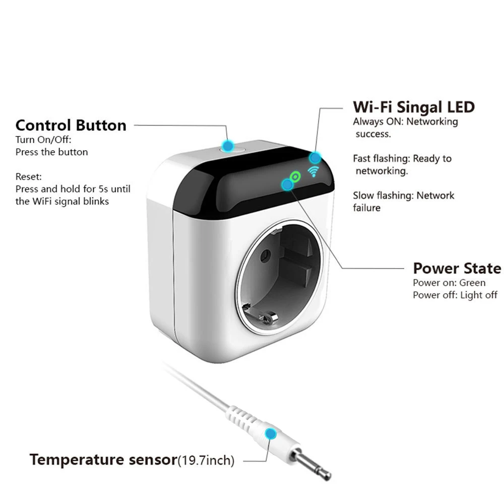 프로그래밍 가능한 스마트 와이파이 온도 조절기 플러그 콘센트 컨트롤러 10A 플러그인 소켓 앱 난방용