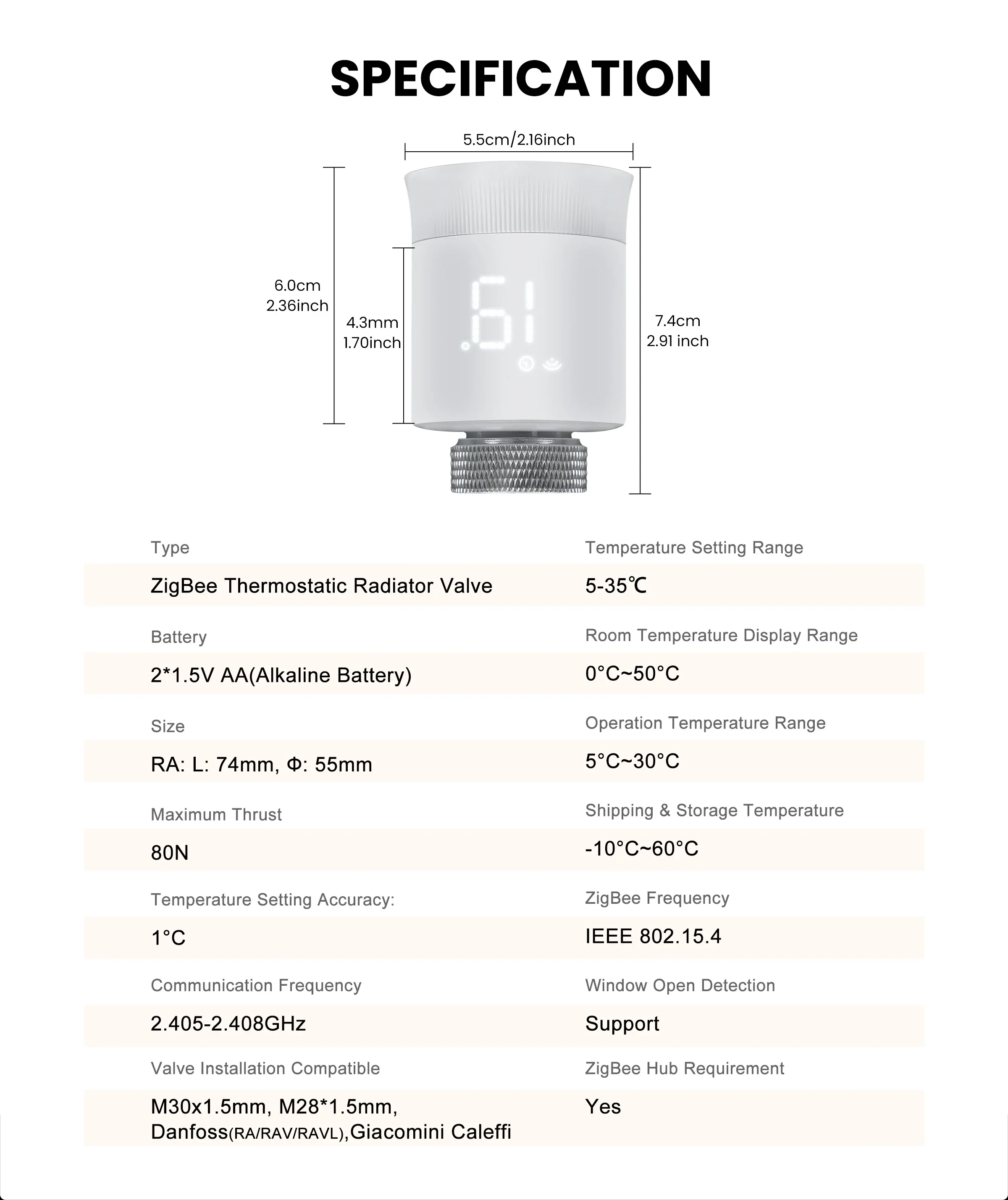 | Type | ZigBee Thermostatic Radiator Valve |