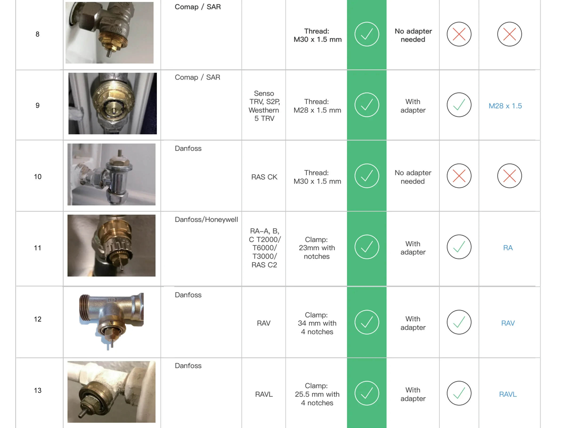 | Valve Installation Compatible | M30x1.5mm, M28*1.5mm, Danfoss(RA/RAV/RAVL), Giacomini Caleffi |