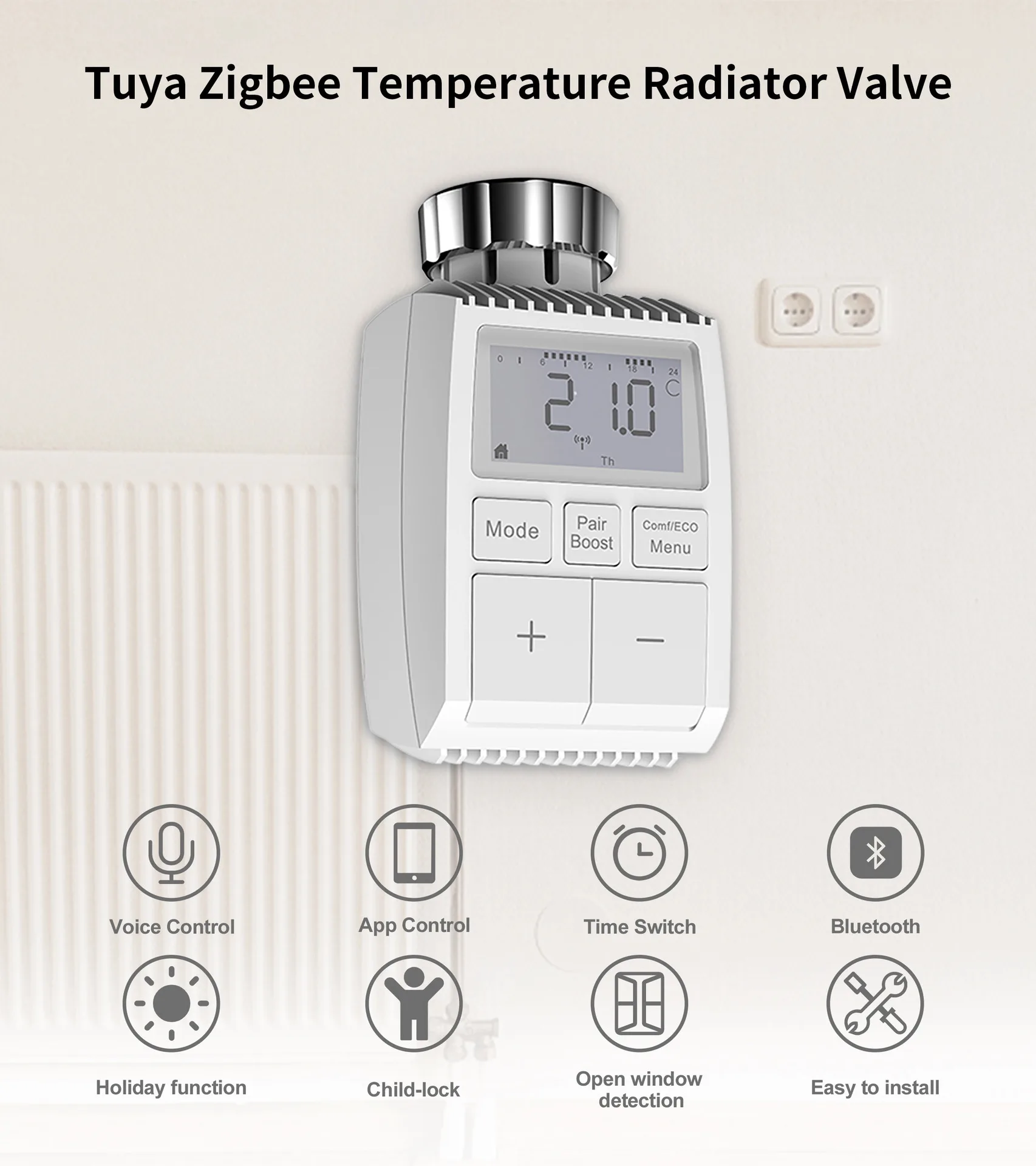 Tuya ZigBee TRV 스마트 온도 조절 밸브 라디에이터 액추에이터 컨트롤러 게이트웨이 알렉사 구글 얀덱스