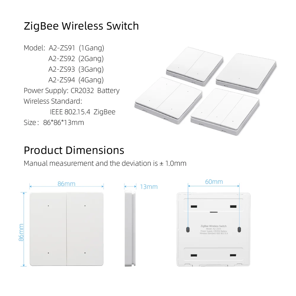 | Work with | Tuya/Smart Life/ZigBee2mqtt/ZHA |