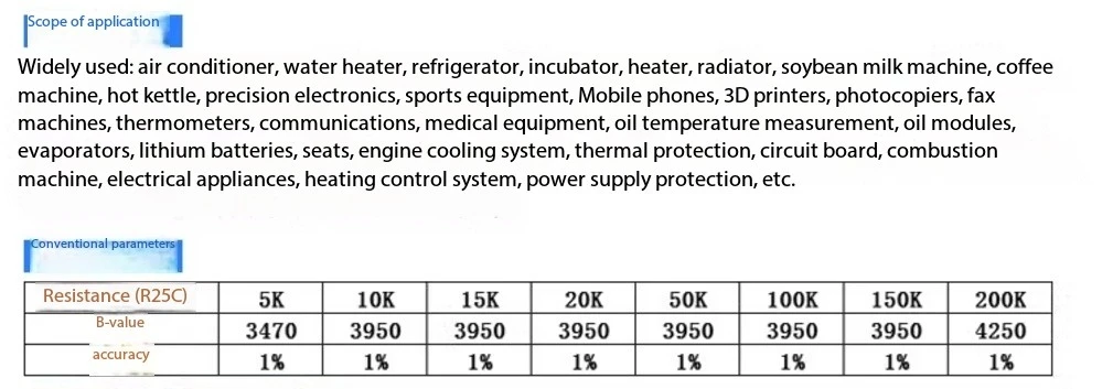 에어컨 온도 센서 5k10K15k20k25K50K100k150k200k 전기 온수기 프로브 태양열 헤드 길이 20cm