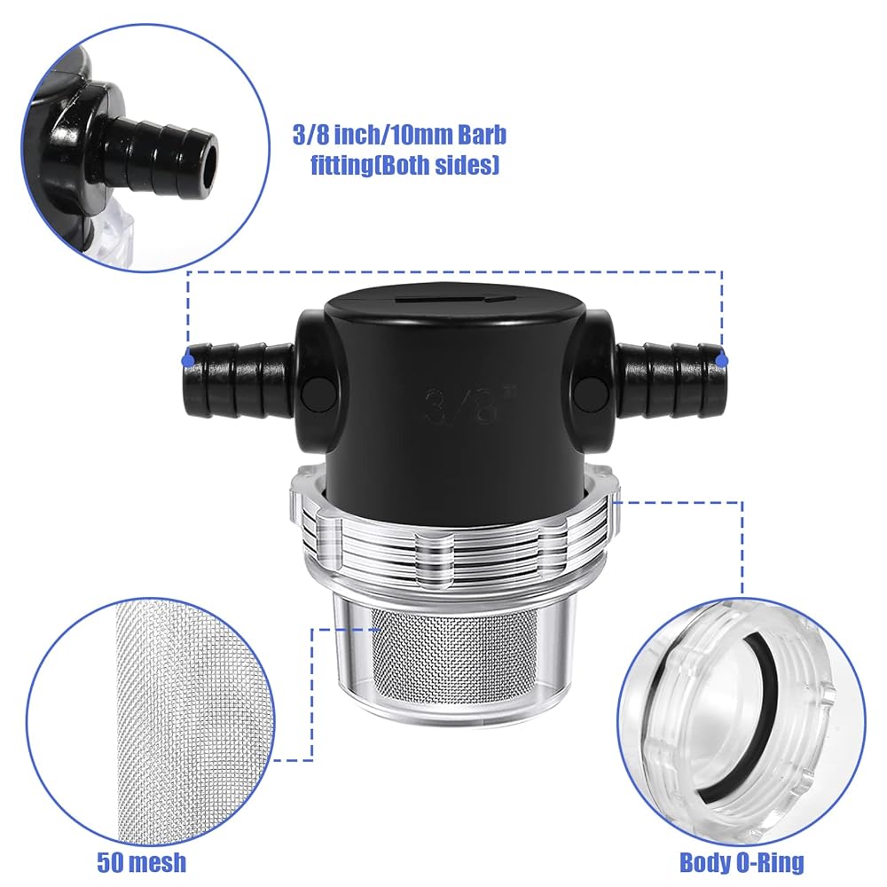 2pcs 3/8인치 워터 펌프 스트레이너 50 메쉬 스테인리스 스틸 스크린 RV 펌프 필터 트위스트온 파이프 스트