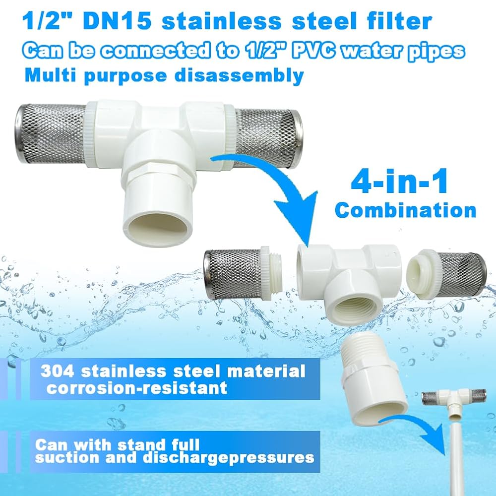 코튼레이크 1/2 T 스트레인저 스틸 필터 커버 1/2 PVC DN15 수도관 흡입 호스 T 스트레인에 연결되어 이물