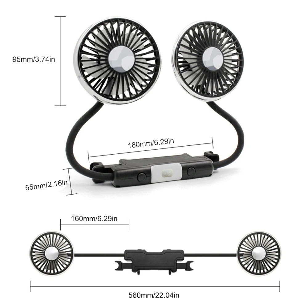 자동차 USB 더블 머리 냉각 액세서리 가능한 조명 냉각기 공기 LED 360 조정 자동 받침 속도