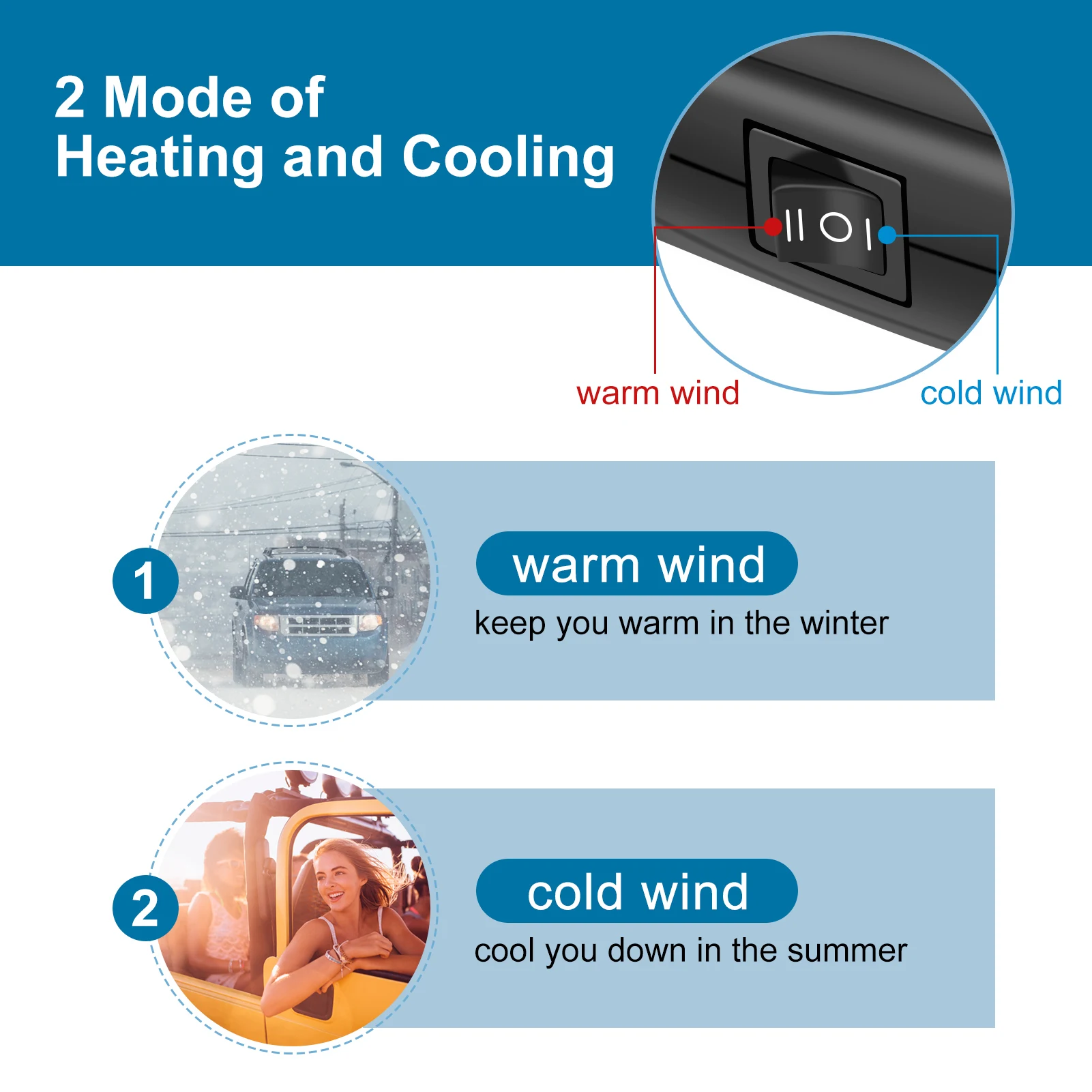 12V 200W 차량용 휴대용 2 in 1 세라믹 냉온풍기 히터 팬 제빙기/김서림 방지기 차량용 김서림 방지기 차량