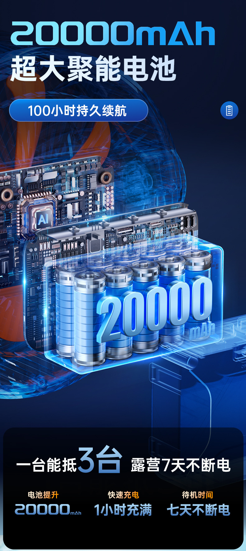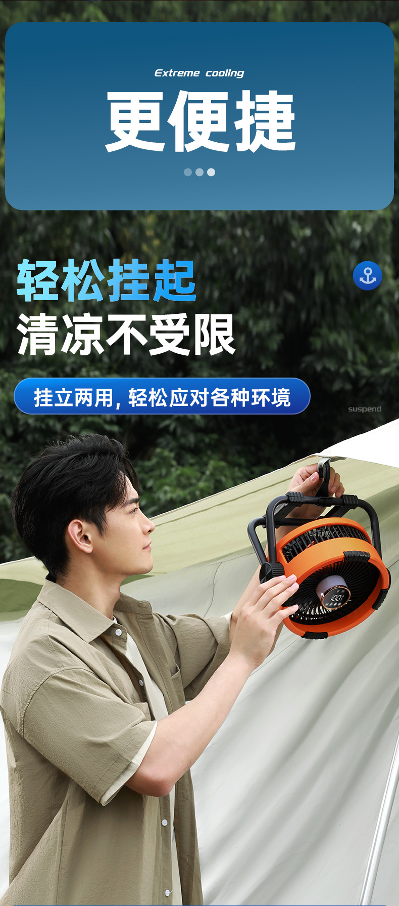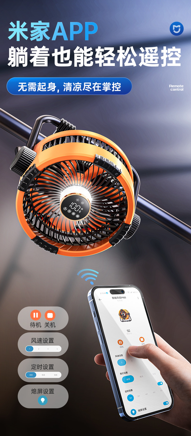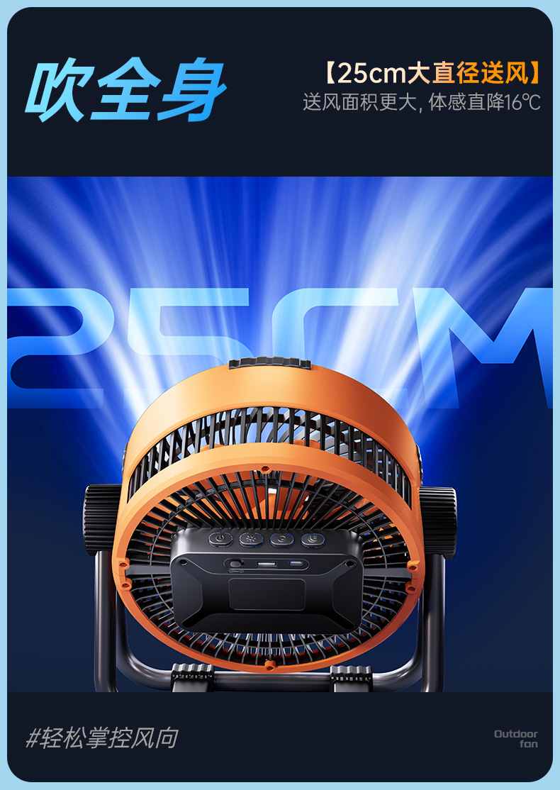 야외용 선풍기 무선 캠핑용 20000 소형 리모컨 ORANGE 보조배터리