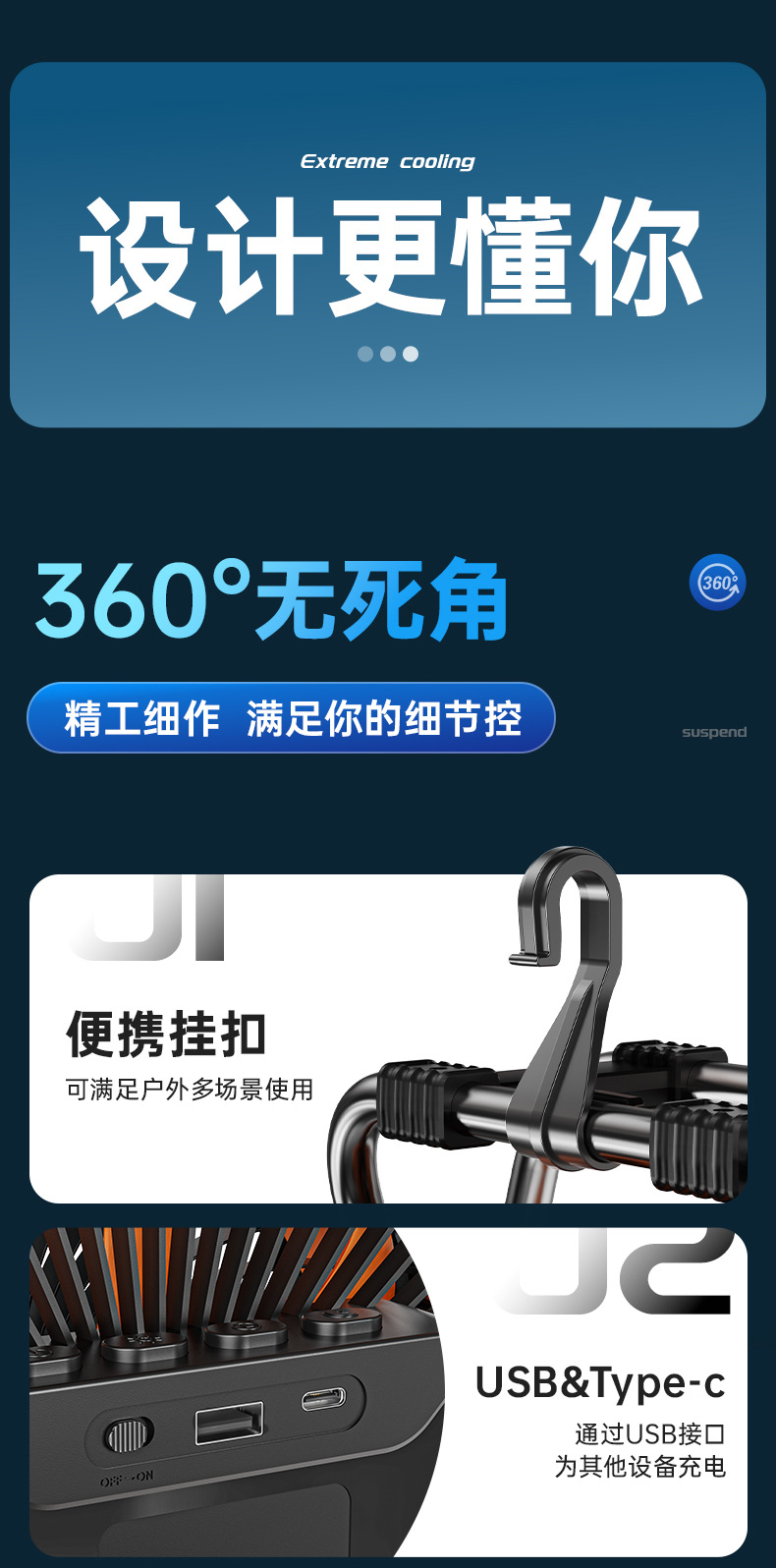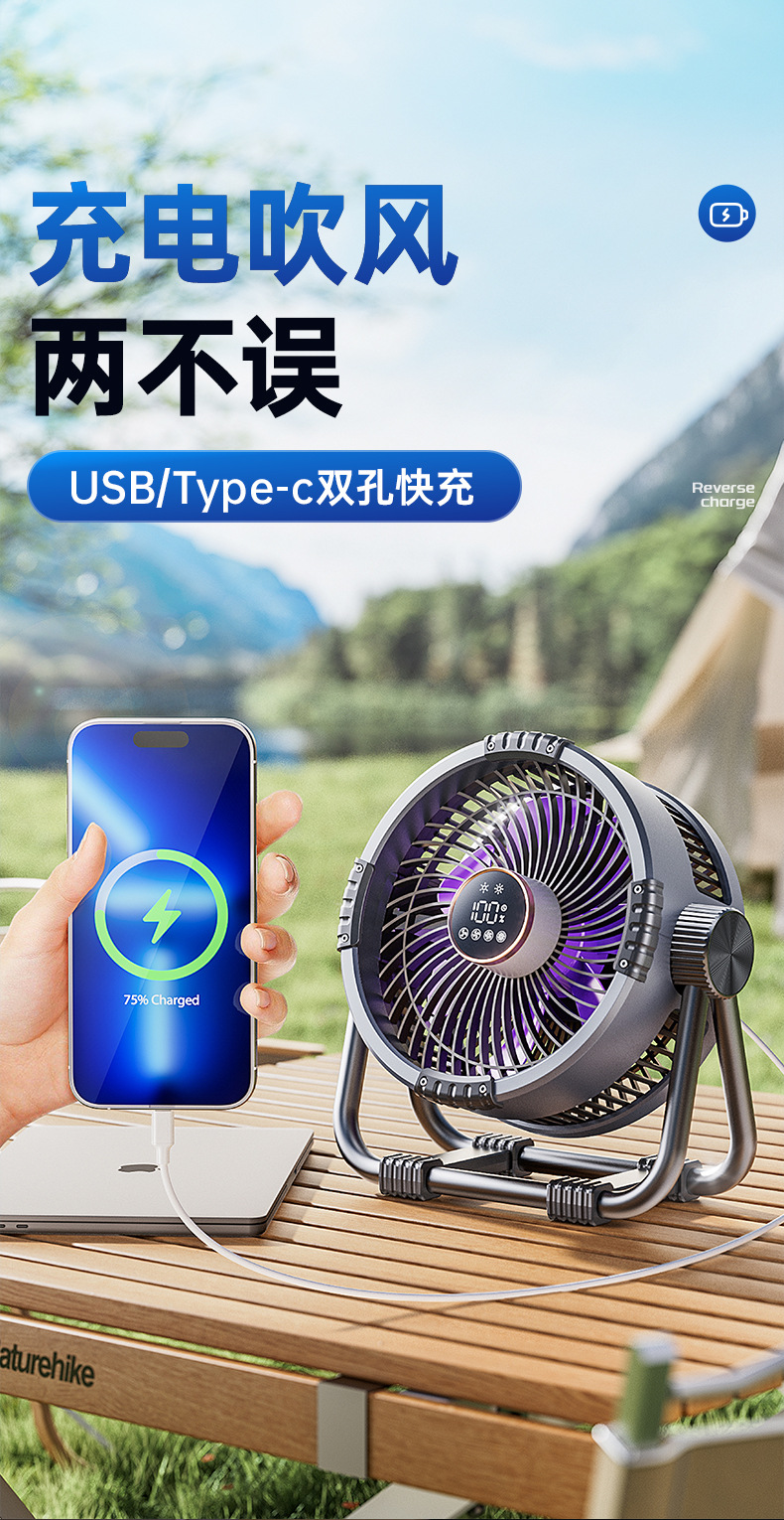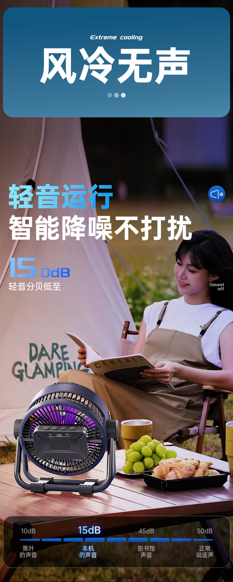 야외용 선풍기 무선 캠핑용 20000 소형 리모컨 ORANGE 보조배터리