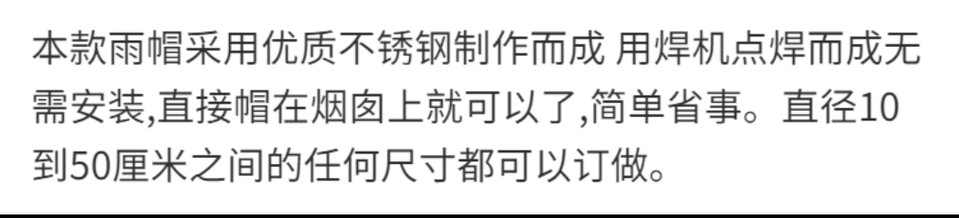 | 화물번호 | 201 스테인리스 굴뚝 파이프 레인캡 |