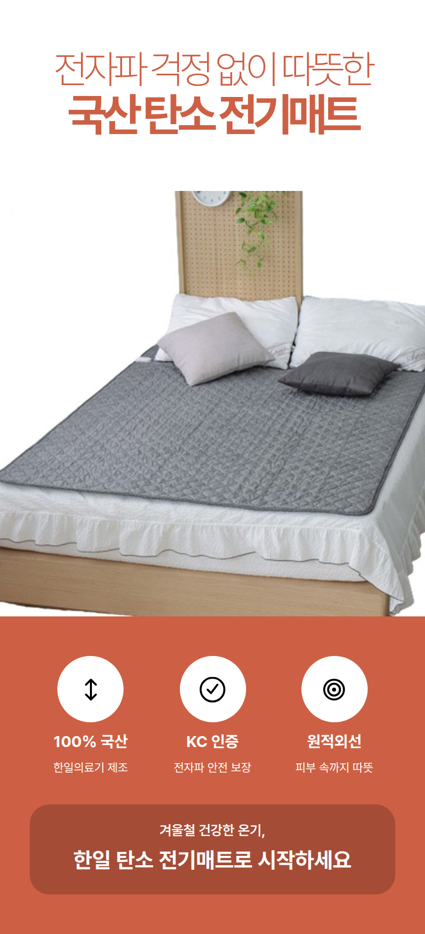 워셔블 전기매트 더블 한일 카본 탄소매트 중 100x180cm